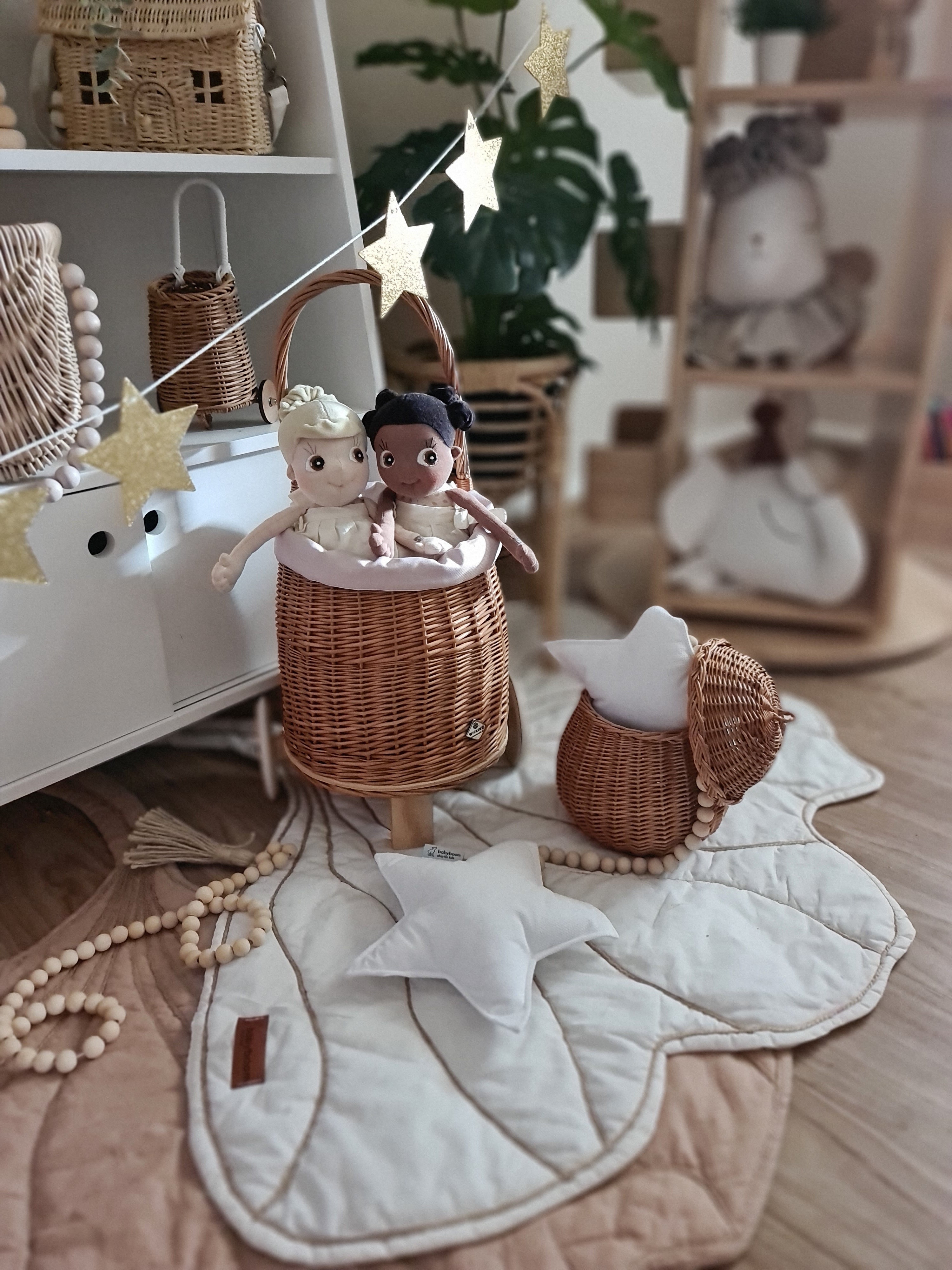 Powstaje z wyselekcjonowanej, europejskiej wikliny, która jest surowcem odnawialnym i biodegradowalnym. Każdy egzemplarz jest ręcznie pleciony przez rzemieślników, dzięki czemu zachwyca równym splotem i wyjątkową trwałością. Wózek nie zawiera zbędnych tworzyw sztucznych, jest ekologiczny i przyjazny dla domu.