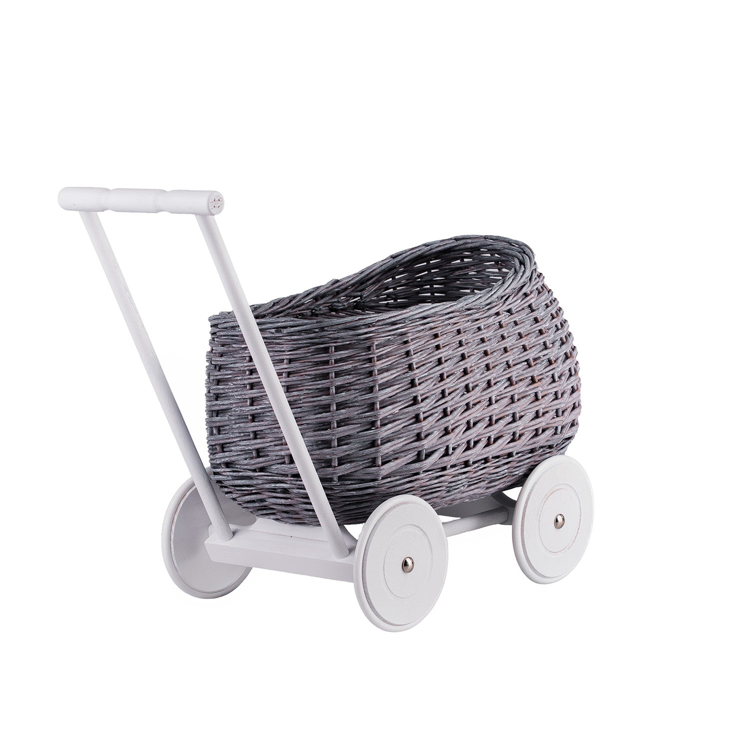 Ten uroczy pchacz z wikliny to idealna propozycja dla maluchów, które zaczynają swoją przygodę z pierwszymi krokami. Ręcznie wykonany w Polsce z naturalnej wikliny malowanej na szaro, łączy wartości ekologiczne z europejską jakością i bezpiecznym designem. Klasyczny kształt, drewniane kółka i rączka zapewniają stabilność i estetyczny wygląd — idealny do zabawy w domu i na świeżym powietrzu.