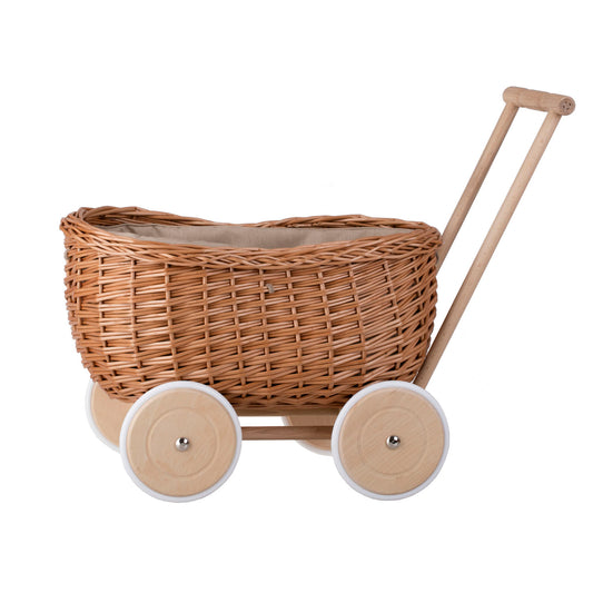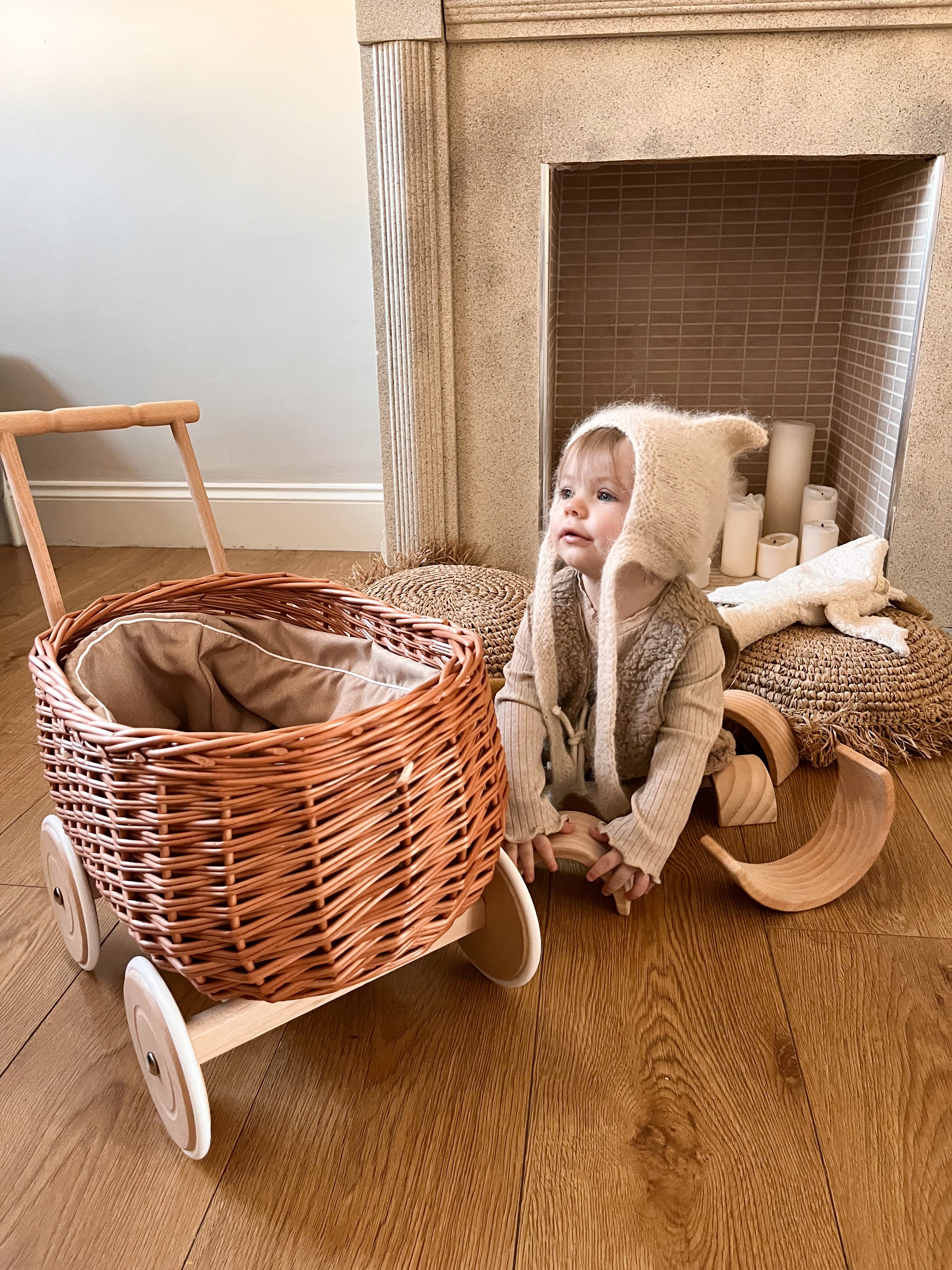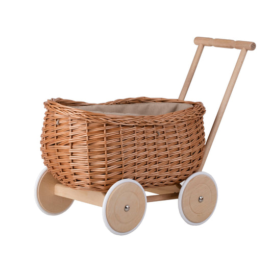 Luke wiklinowy wózek pchacz z beżowym obszyciem TheWickerStories