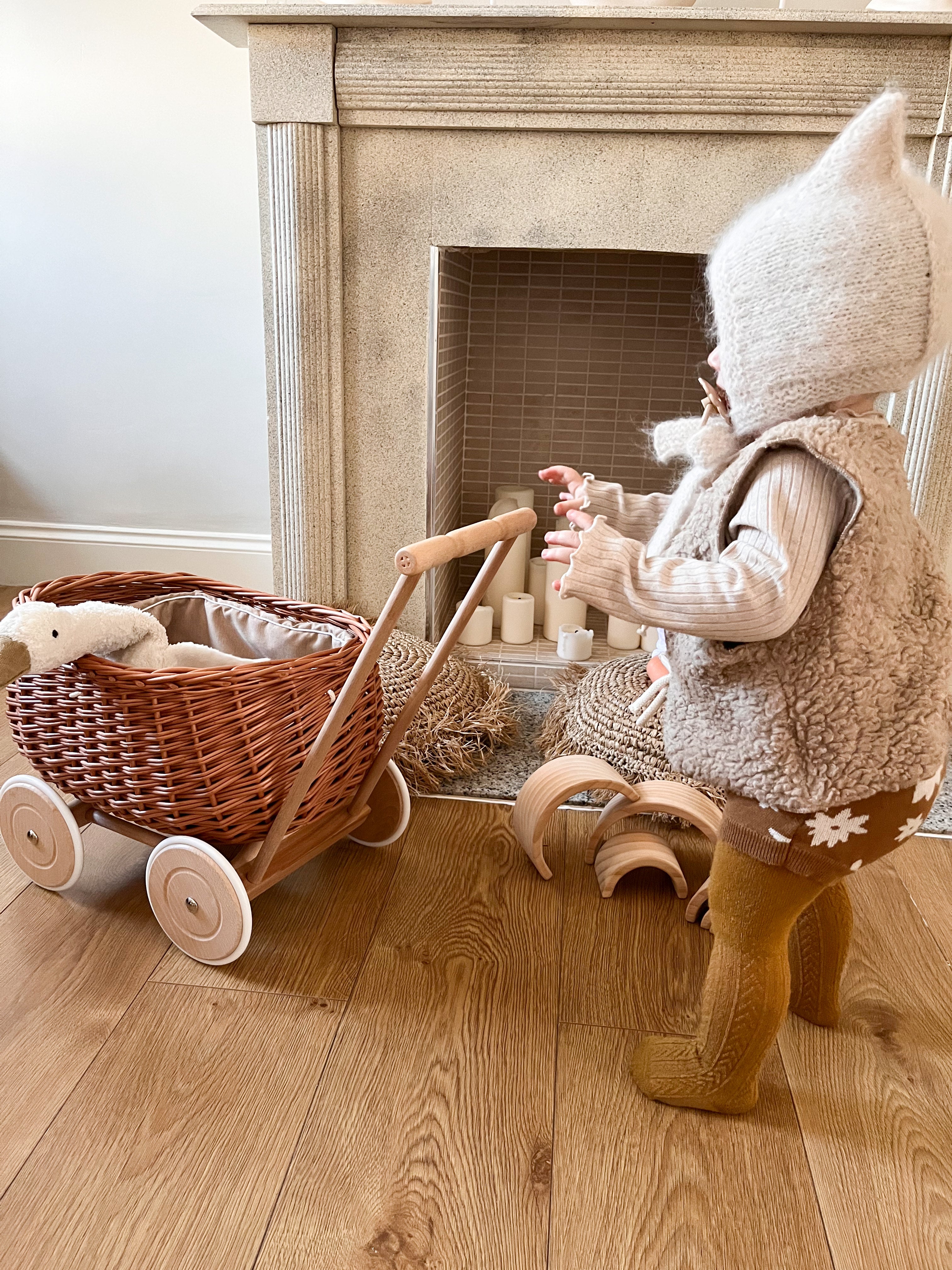 Ten uroczy wiklinowy pchacz to idealna propozycja dla maluchów, które rozpoczynają swoją przygodę z chodzeniem. Wykonany ręcznie w Polsce z naturalnej wikliny, łączy ekologiczne wartości z europejską jakością i bezpiecznym designem. Klasyczny kształt oraz drewniane kółka i uchwyt sprawiają, że wózek jest stabilny, a zarazem estetyczny – idealny do zabawy w domu i na świeżym powietrzu.