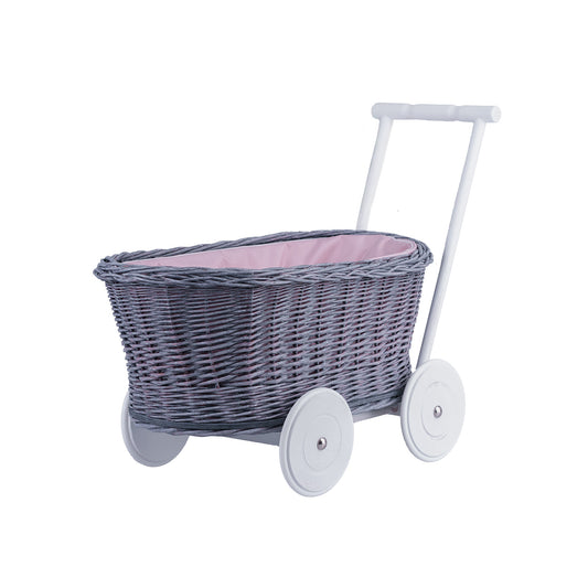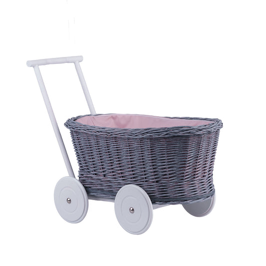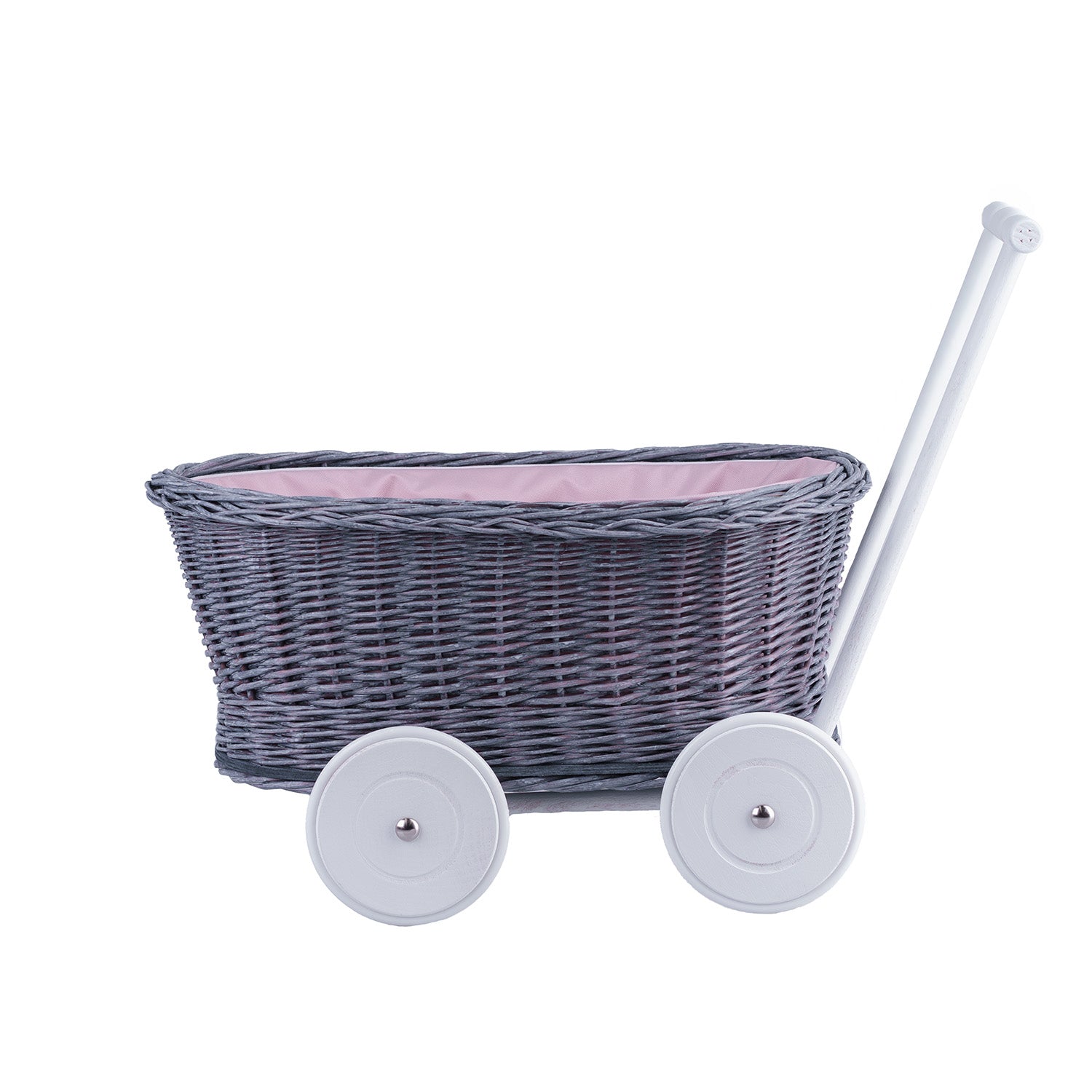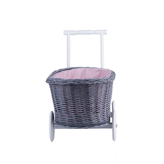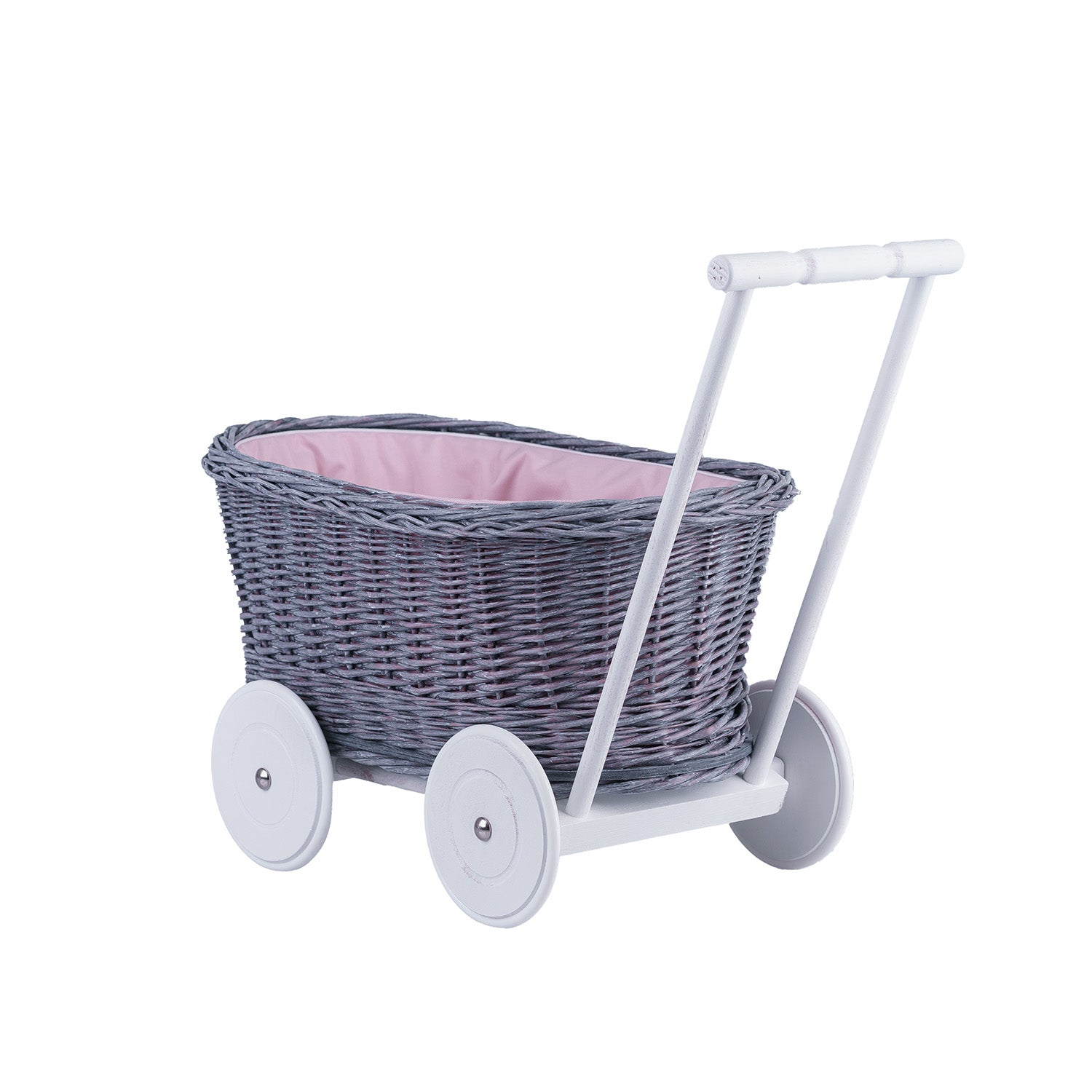 Luke wiklinowy wózek pchacz z różowym obszyciem TheWickerStories