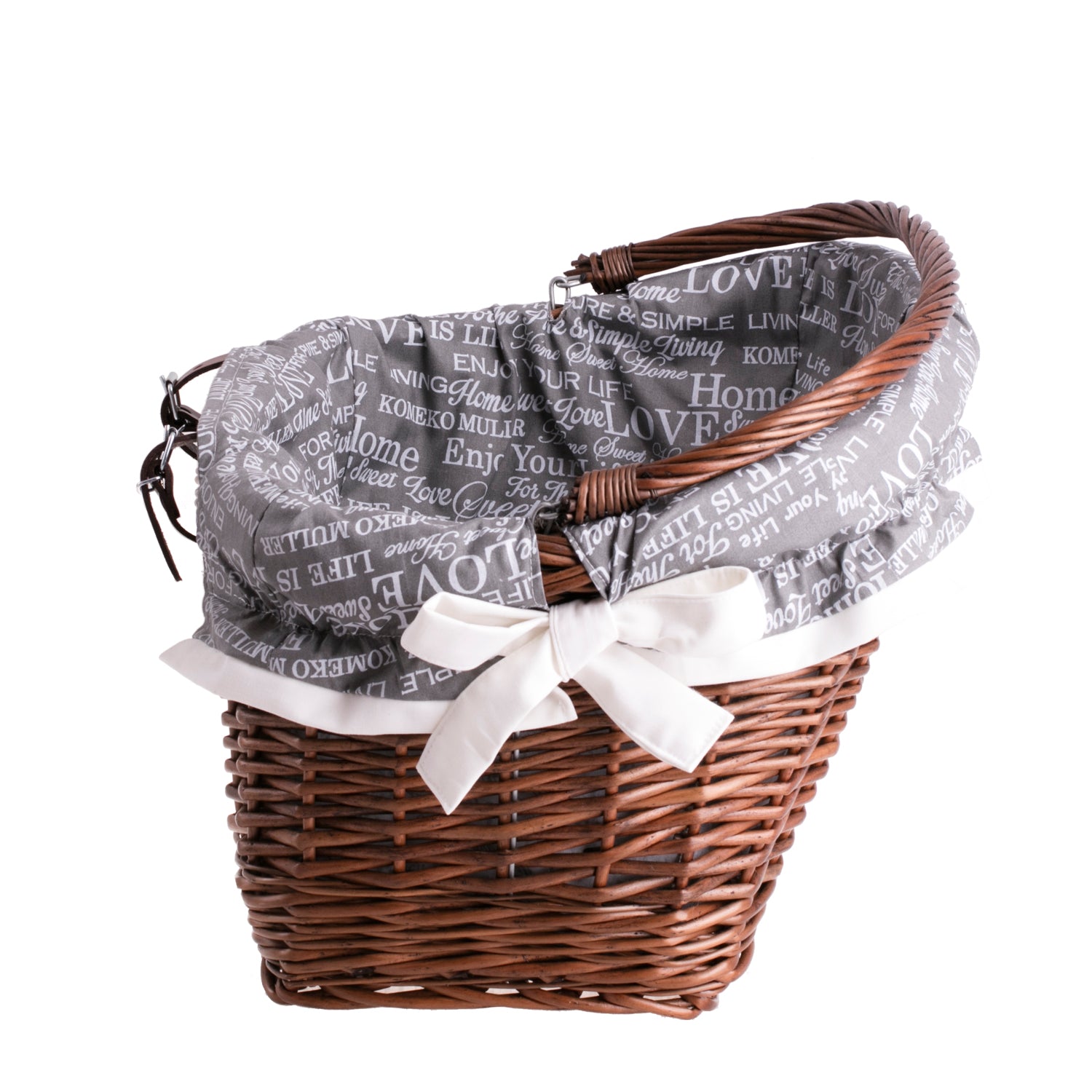 Magnus wiklinowy kosz na rower na kierownicę z szarym obszyciem TheWickerStories
