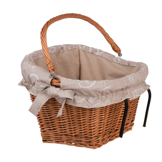 Magnus wiklinowy kosz na rower z beżowym obszyciem, z rączką i hakami TheWickerStories