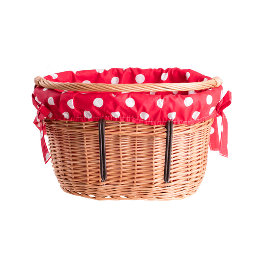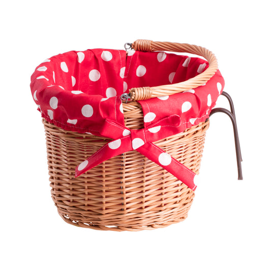Magnus wiklinowy kosz na rower z czerwonym obszyciem, z rączką i hakami TheWickerStories