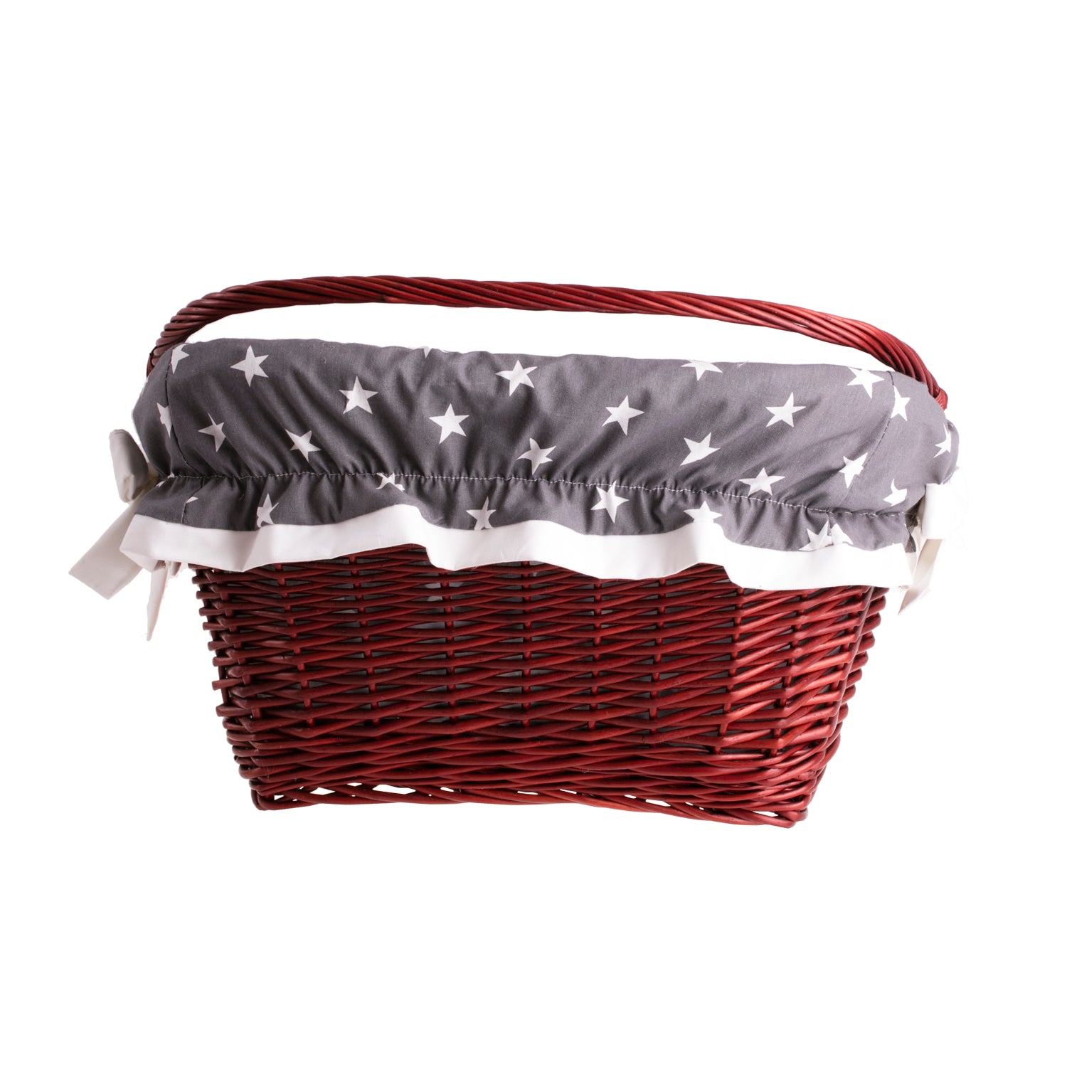 Specyfikacja Twojego Magnus wiklinowy kosz na rower z szarym obszyciem, z rączką i paskami TheWickerStories