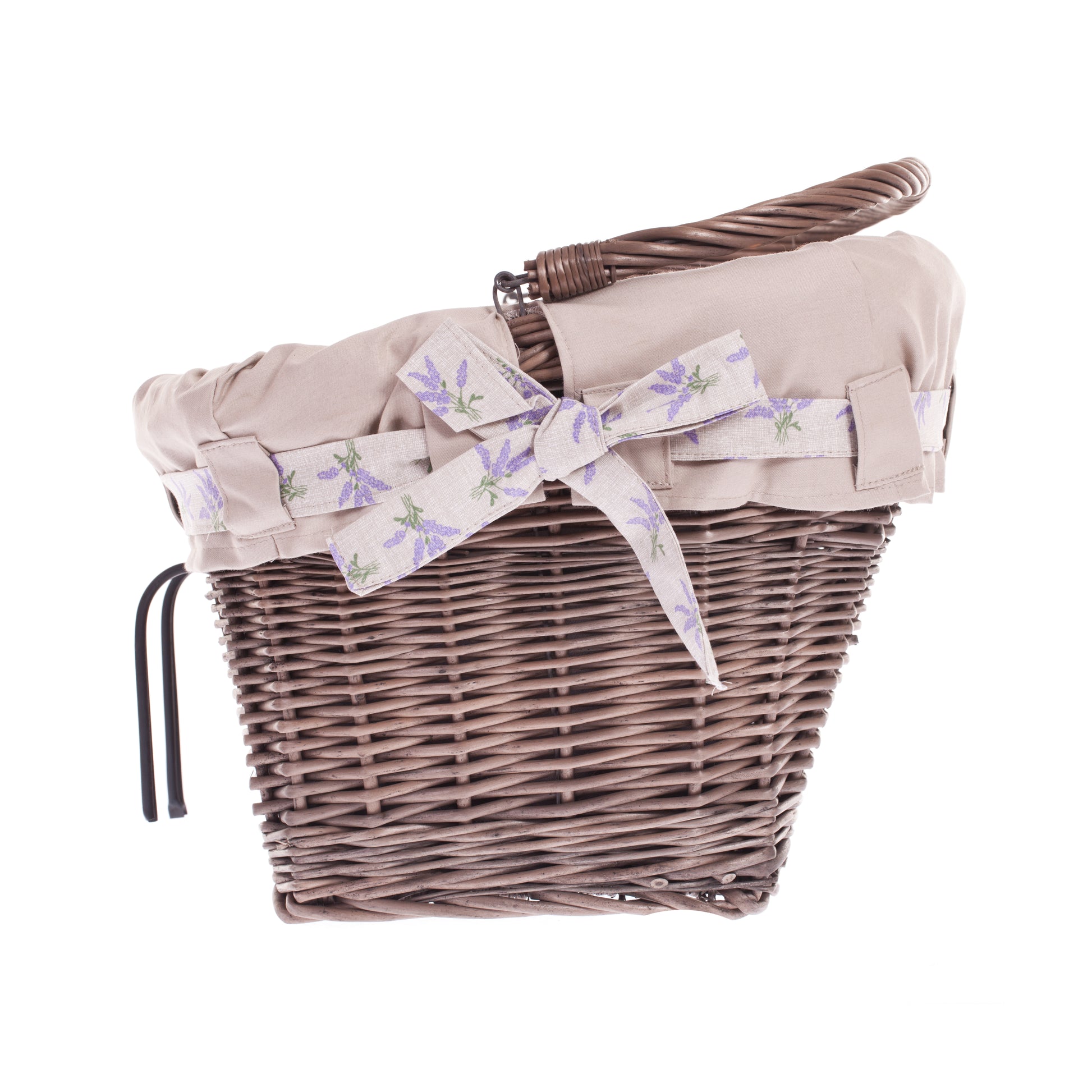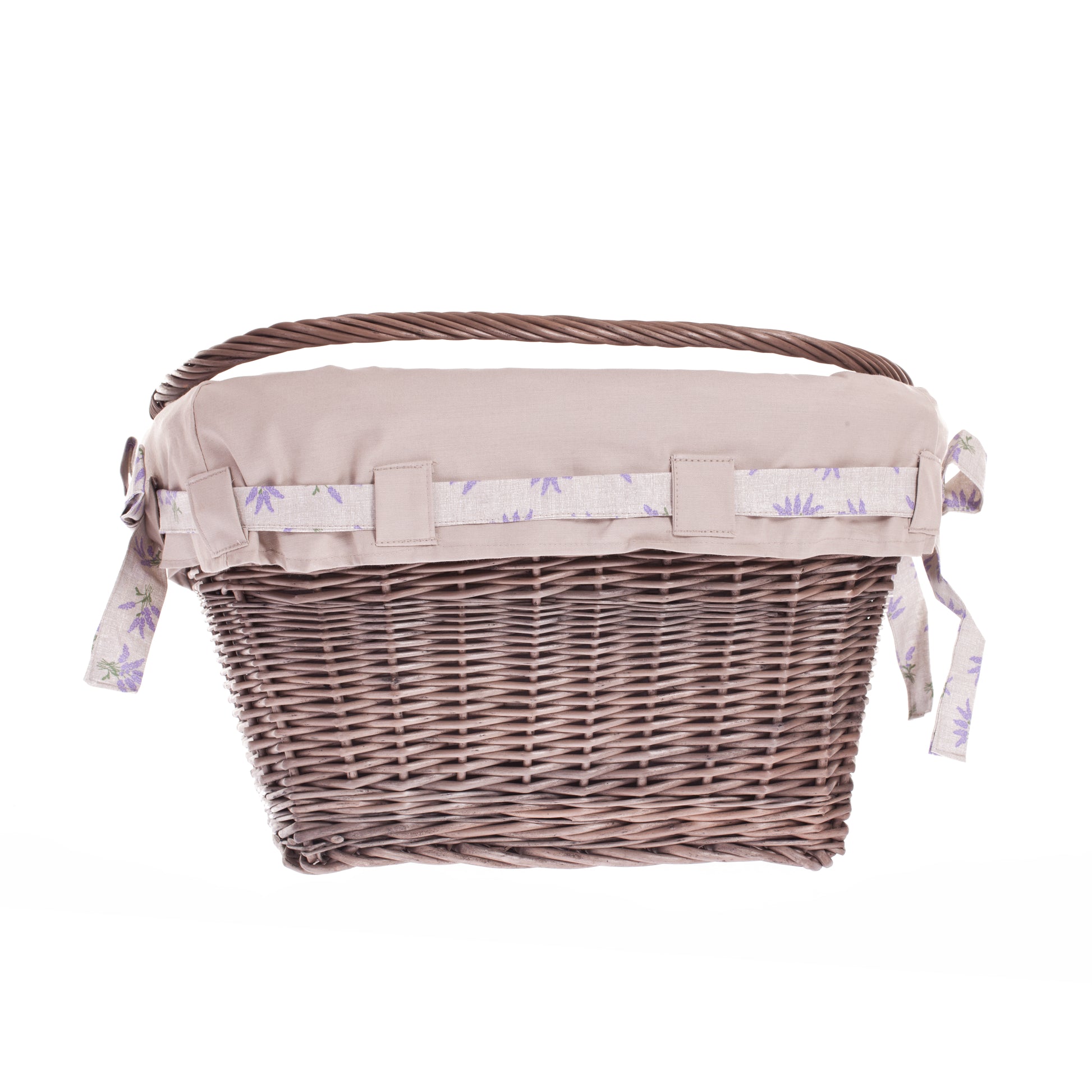 Marinus wiklinowy kosz na rower z beżowym obszyciem, z paskami mocującymi TheWickerStories