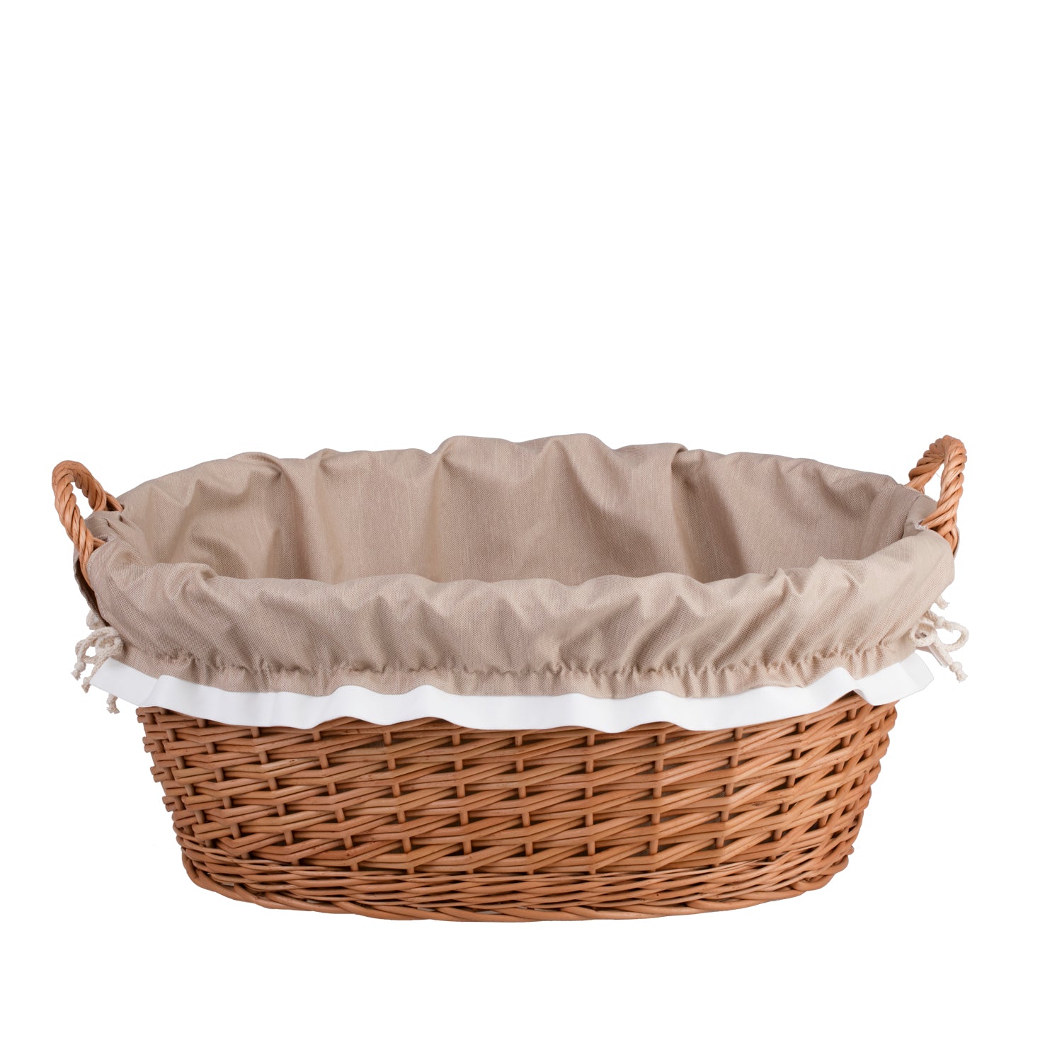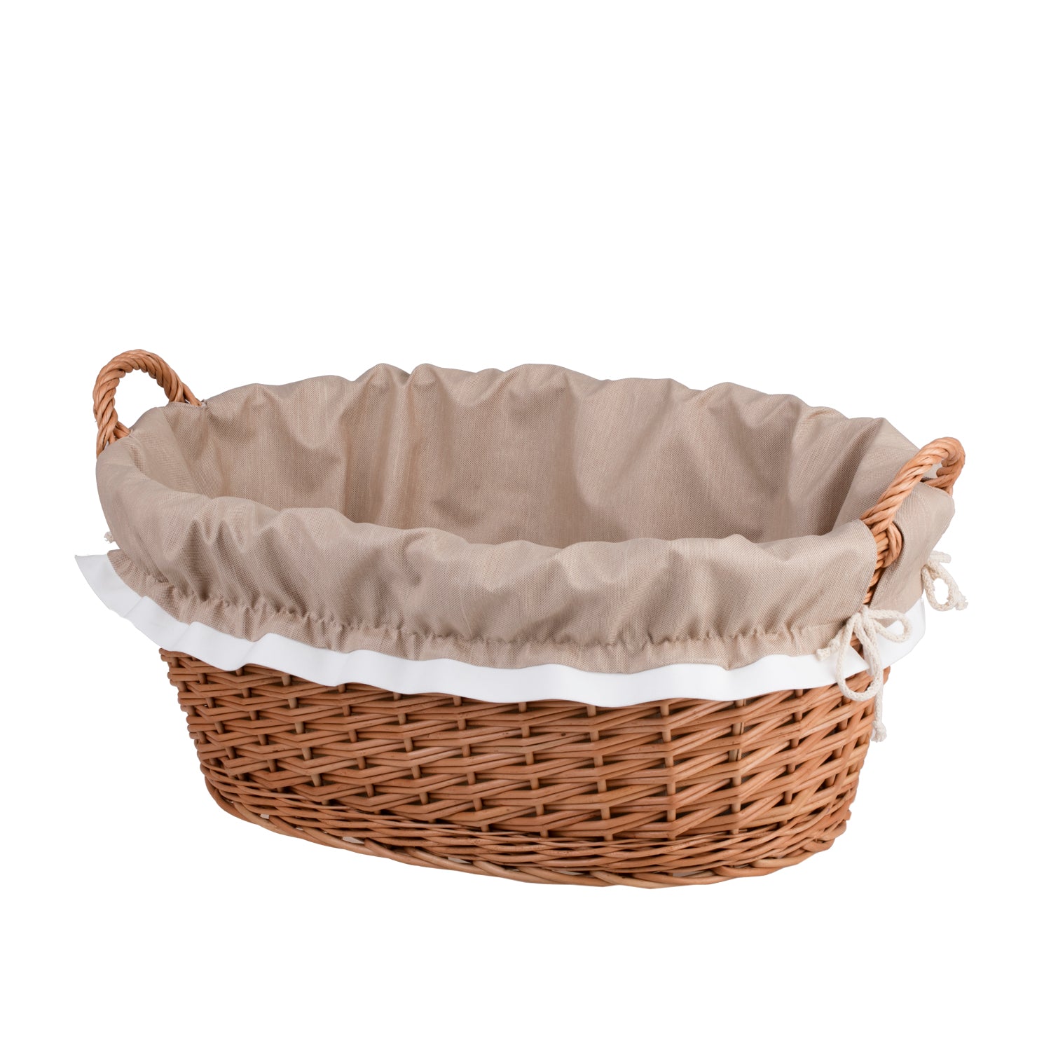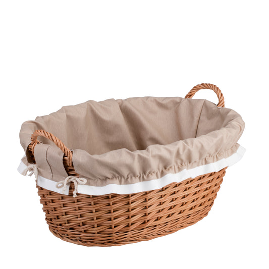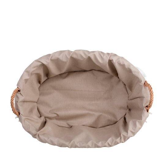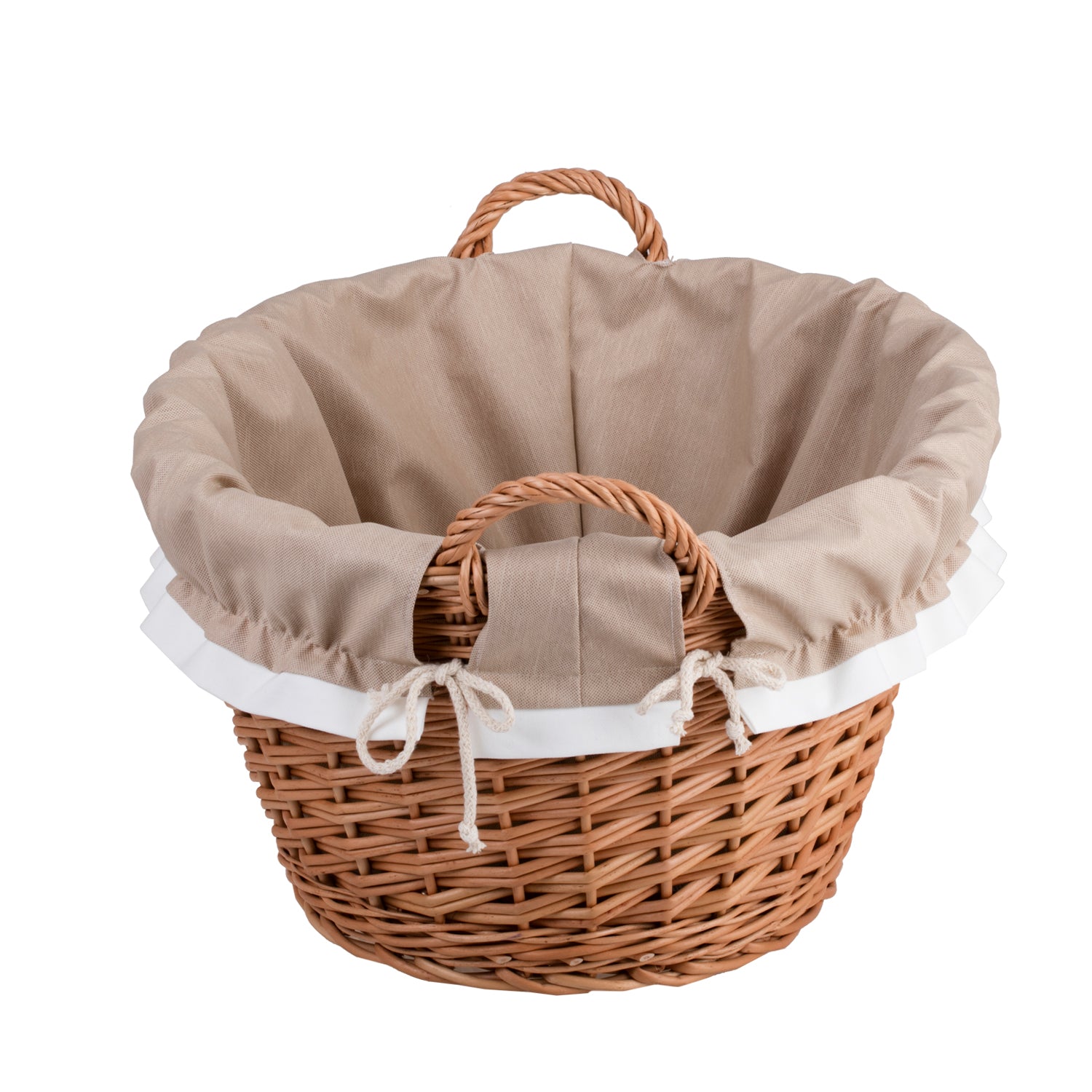 Milvus wiklinowy kosz z beżowym obszyciem i uchwytami TheWickerStories