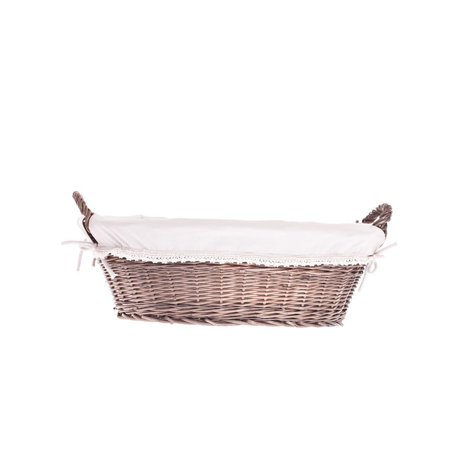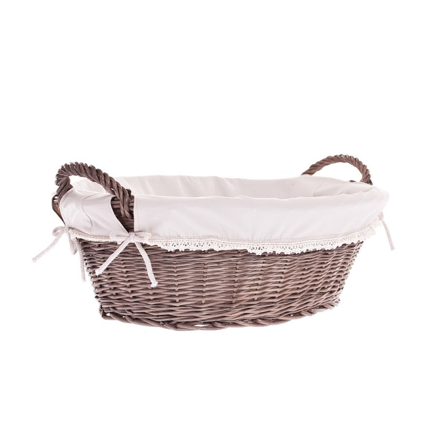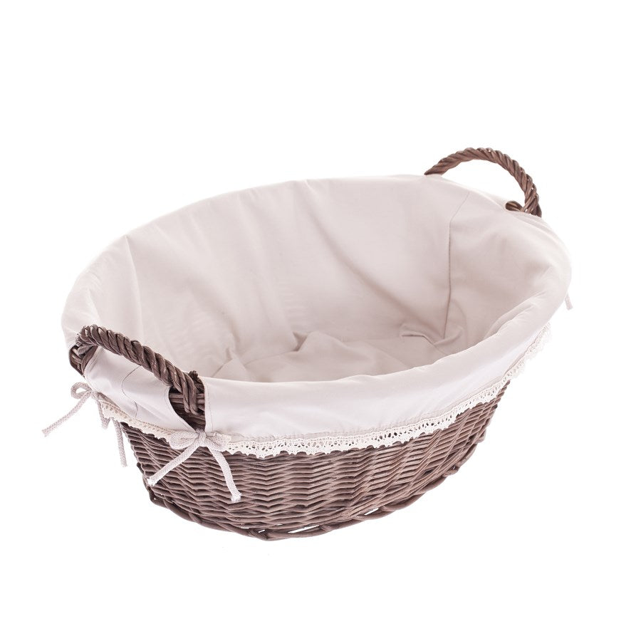 Milvus wiklinowy kosz z beżowym obszyciem i uchwytami TheWickerStories