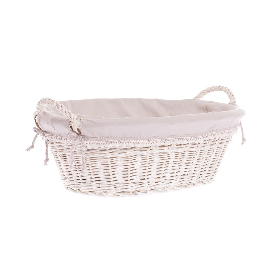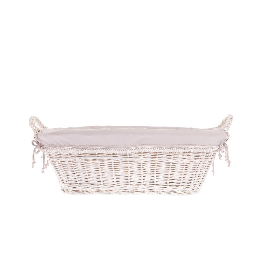 Milvus wiklinowy kosz z beżowym obszyciem i uchwytami TheWickerStories
