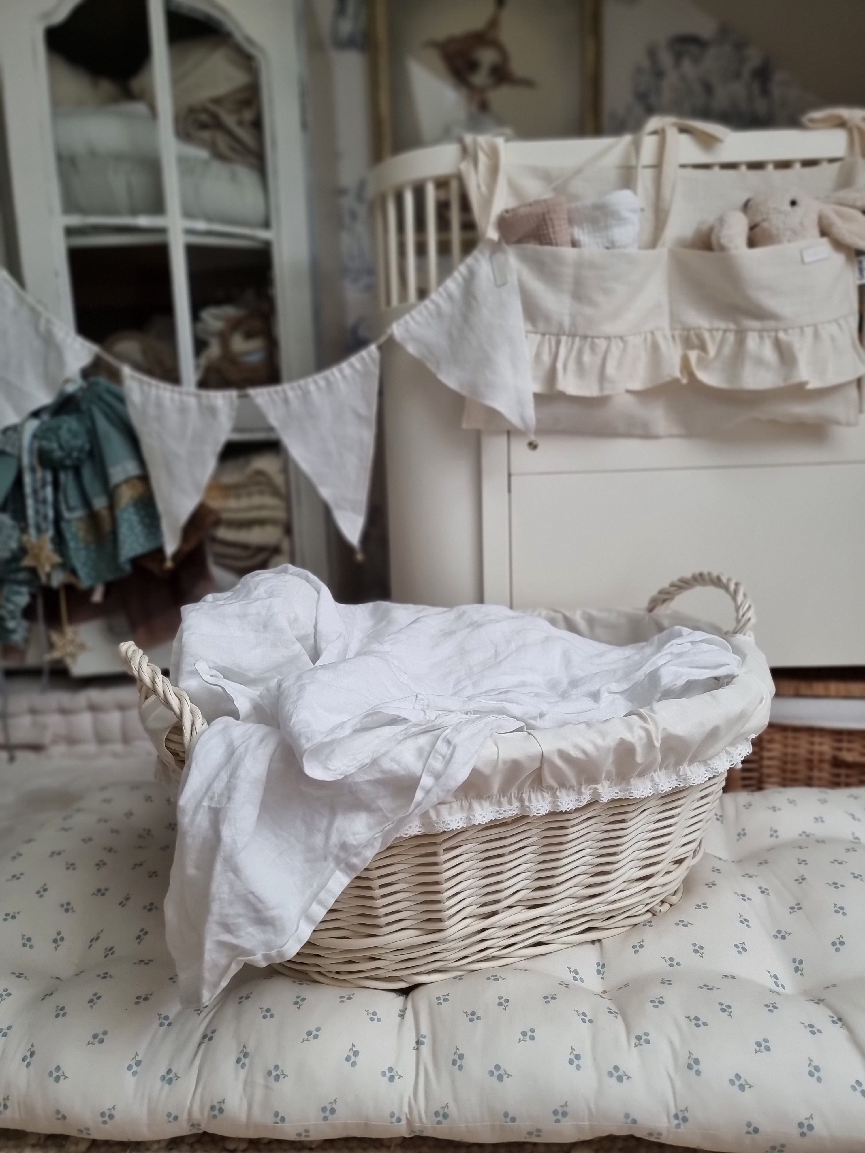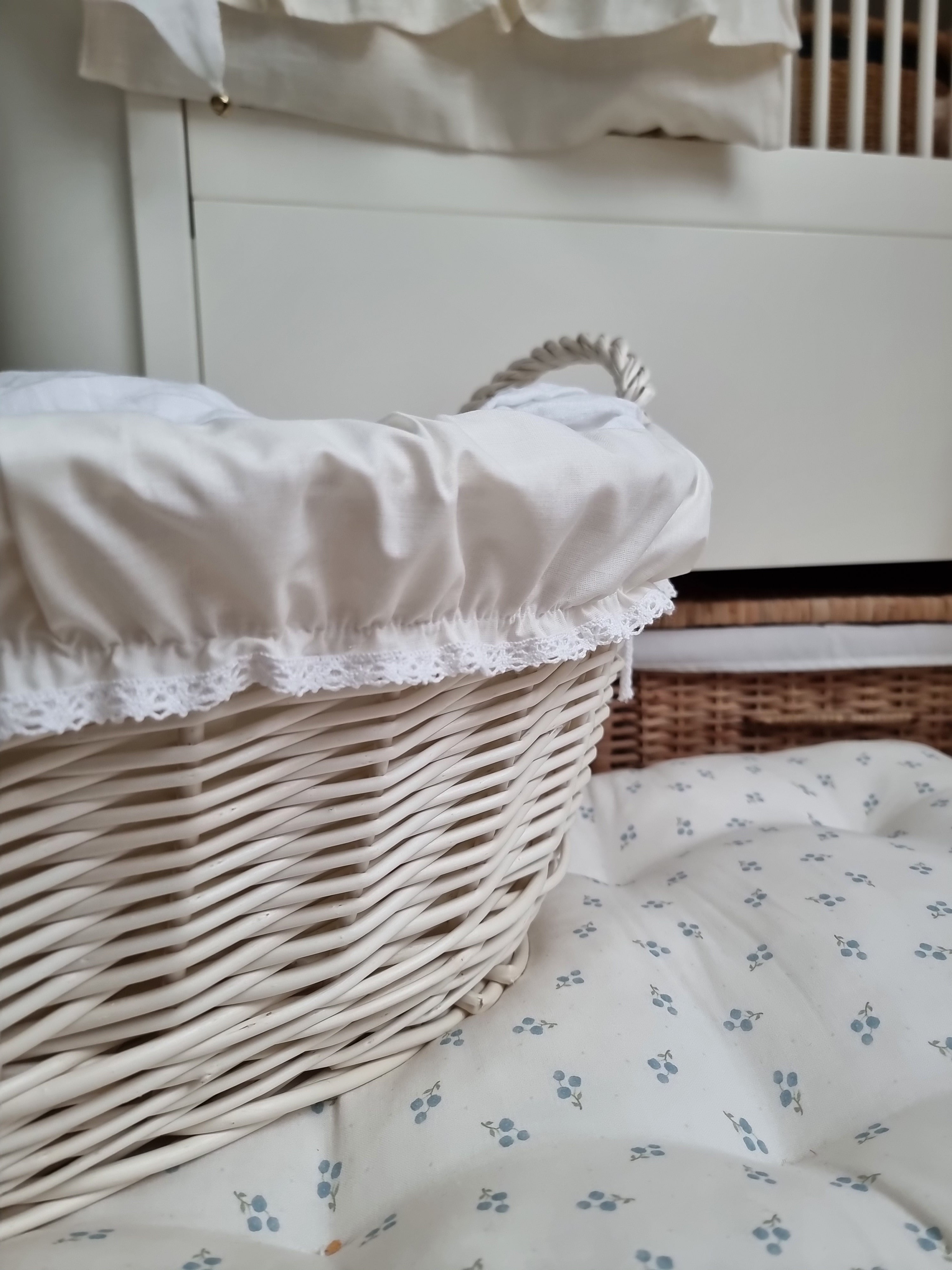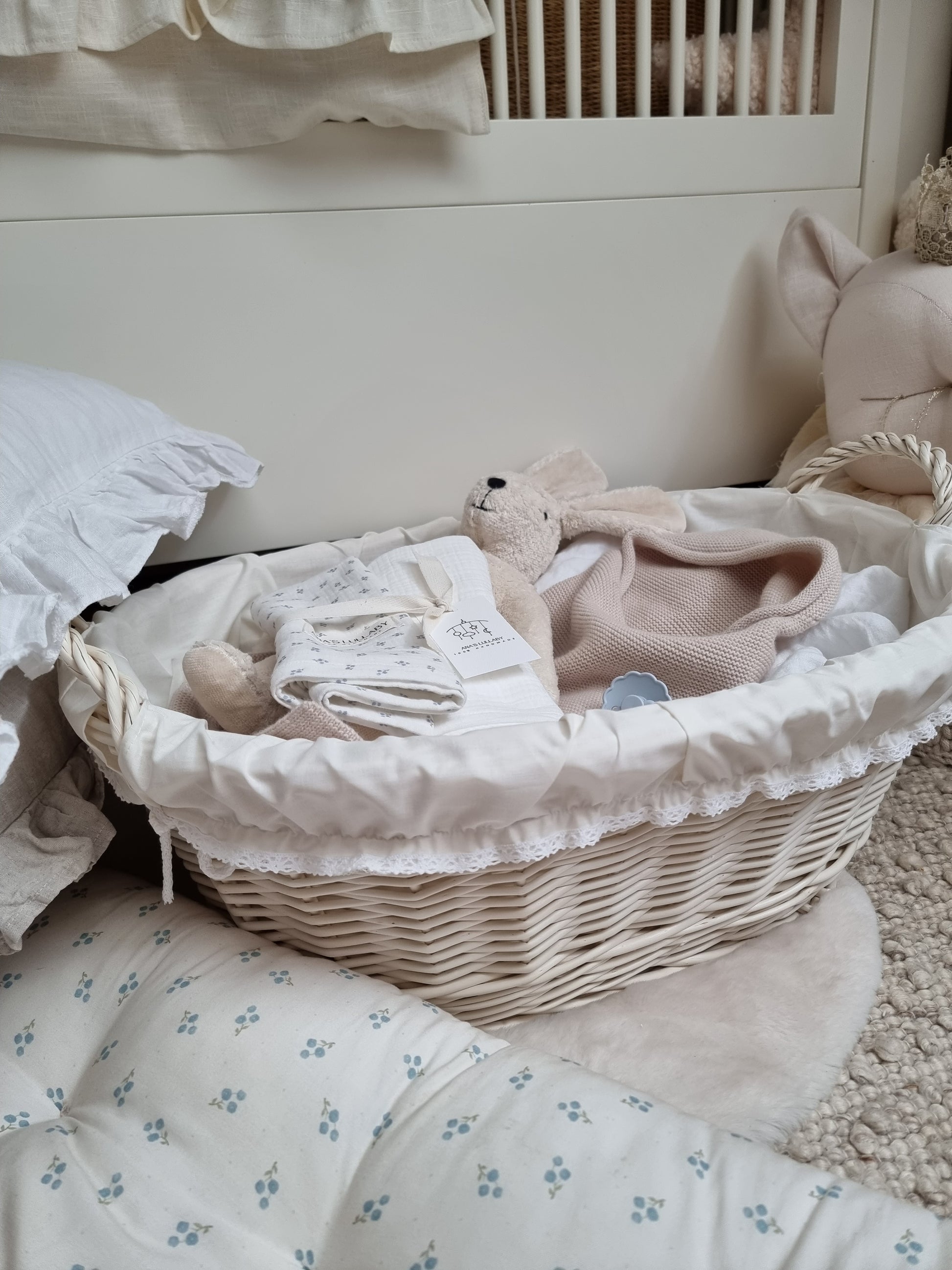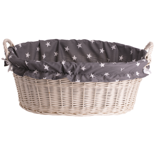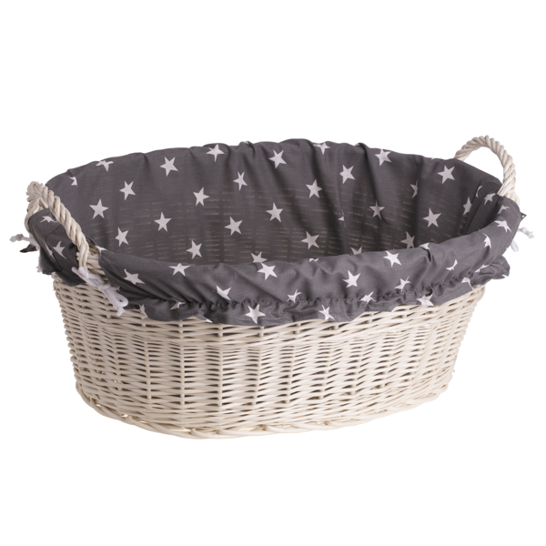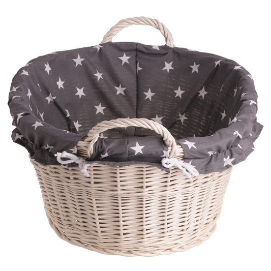 Milvus wiklinowy kosz z szarym obszyciem i uchwytami TheWickerStories