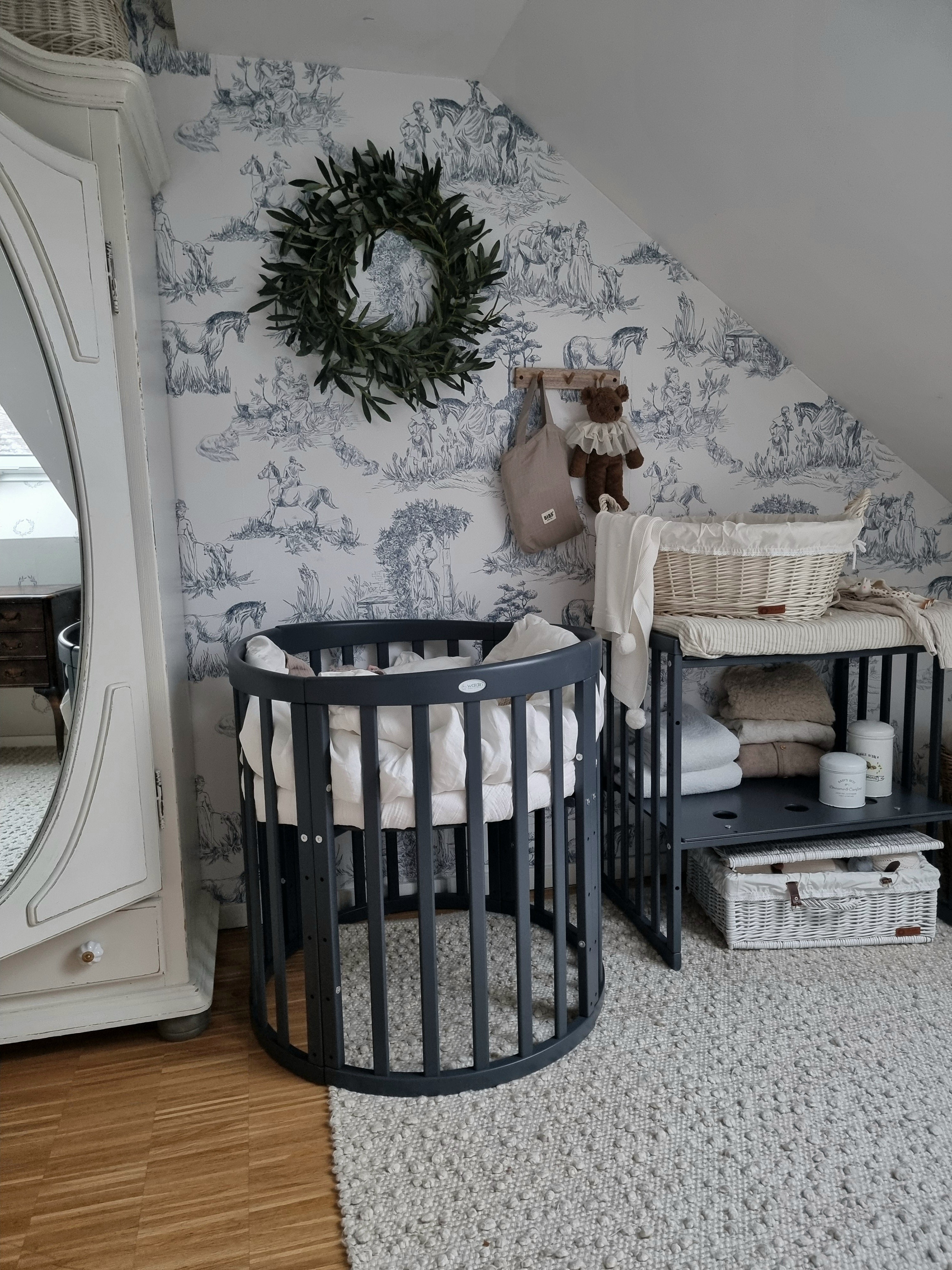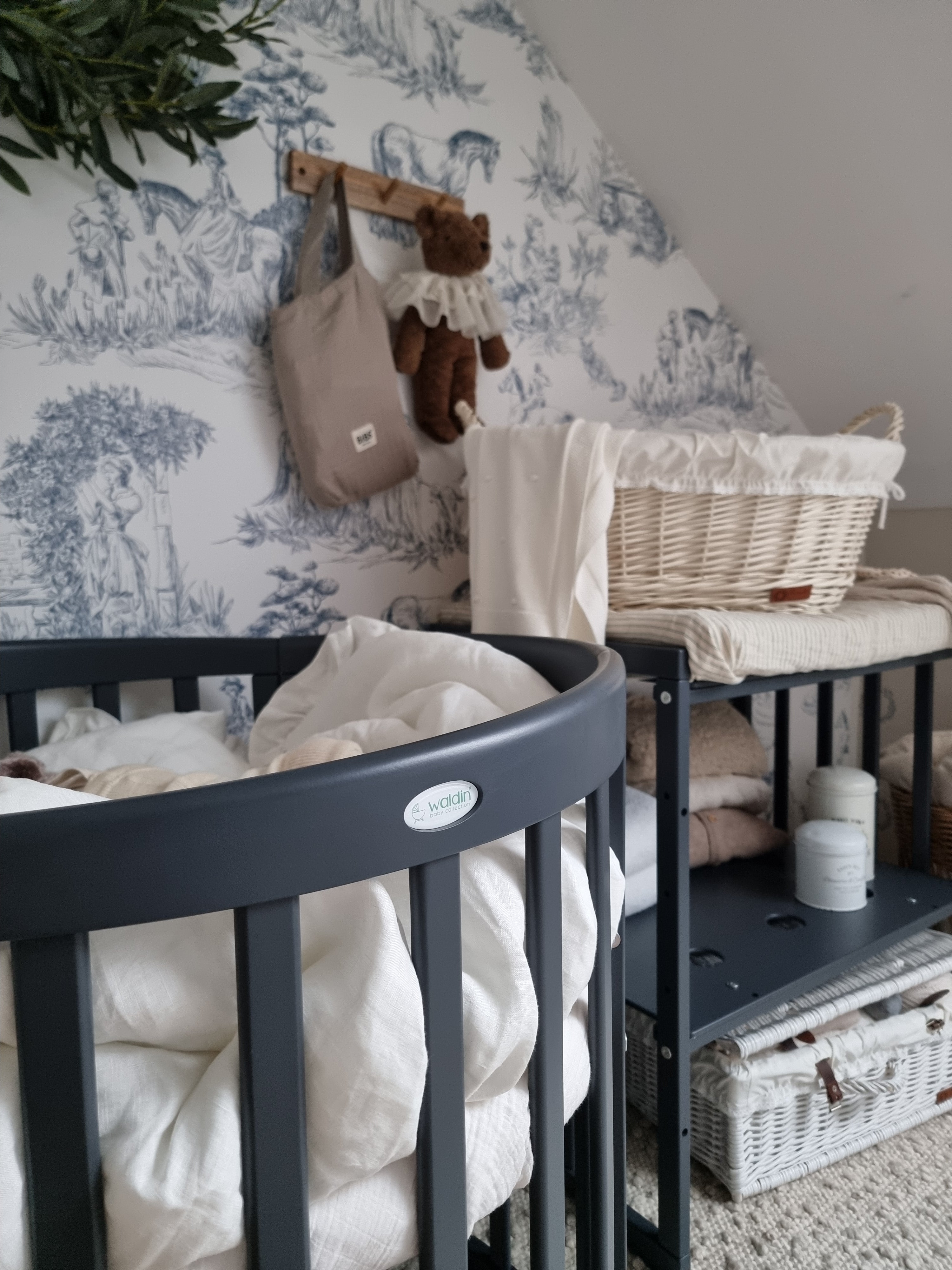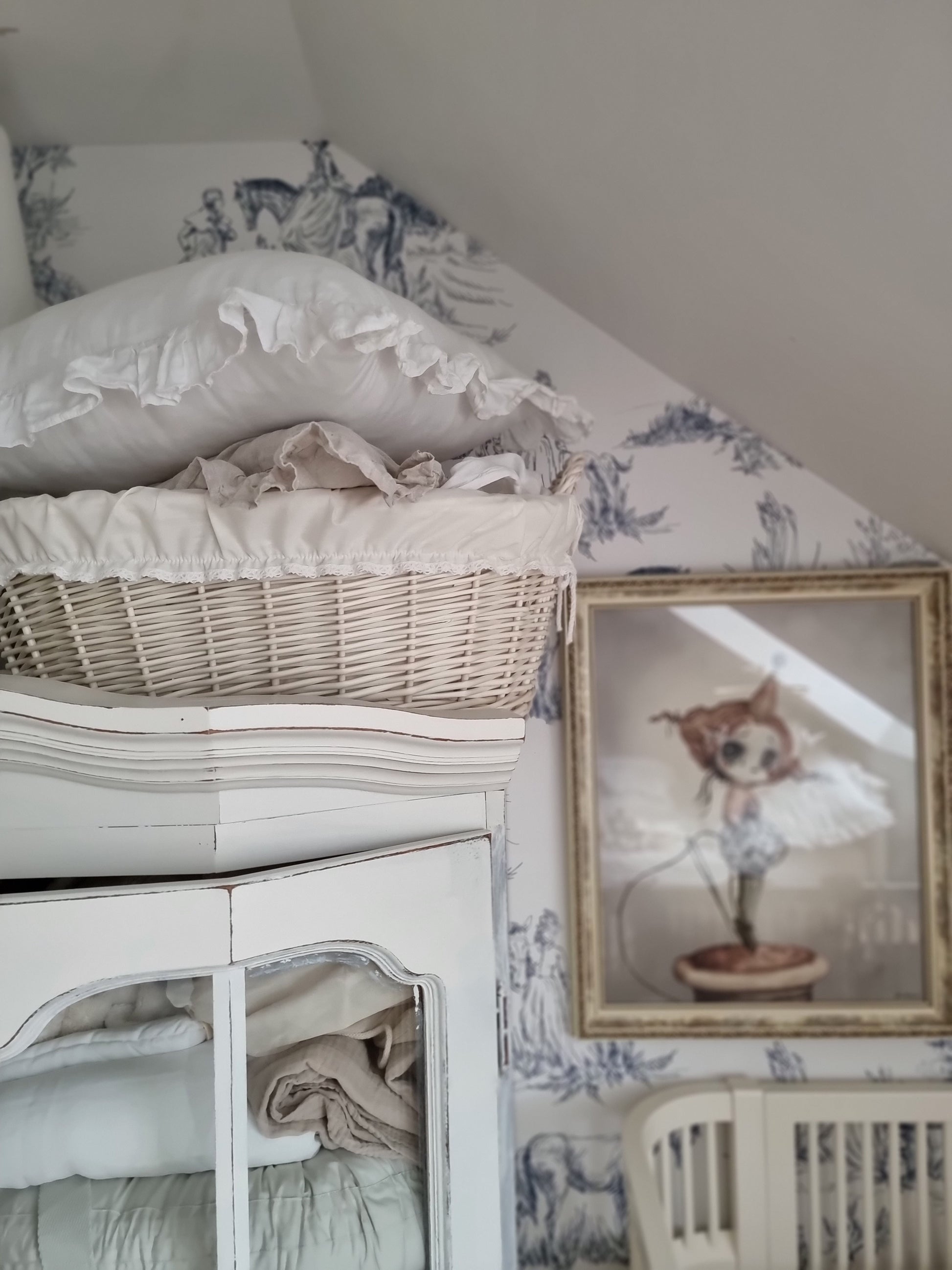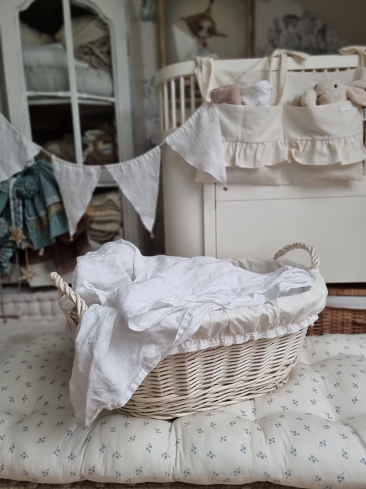 Milvus wiklinowy kosz z szarym obszyciem i uchwytami TheWickerStories