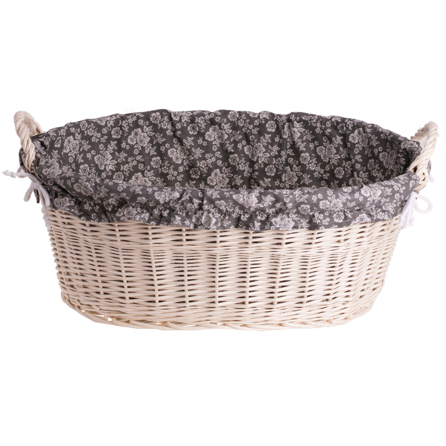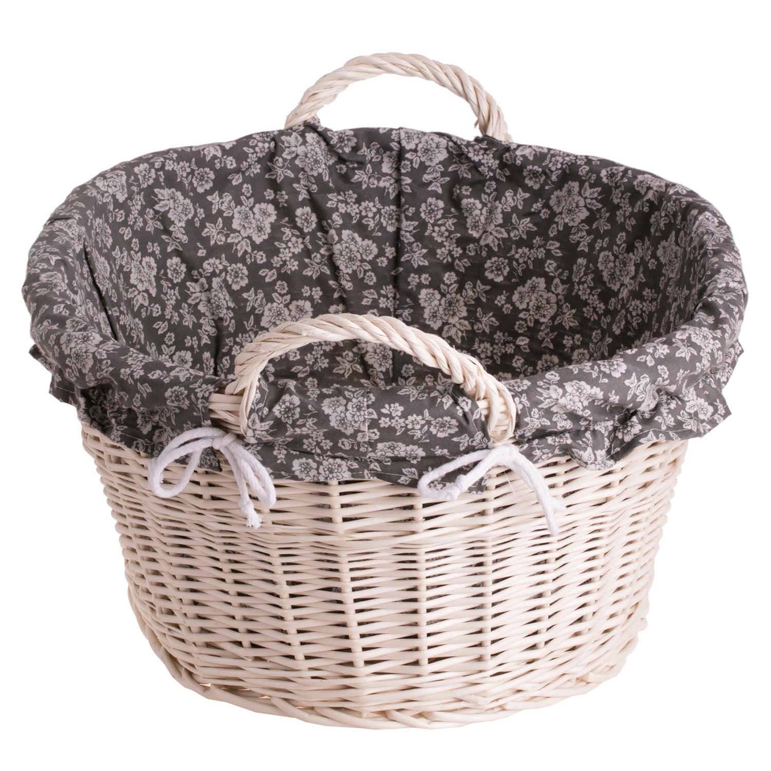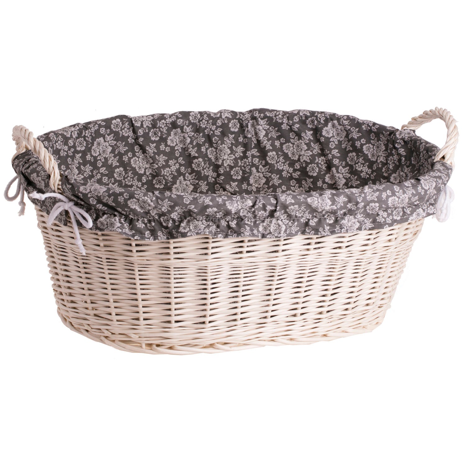 Milvus wiklinowy kosz z szarym obszyciem i uchwytami TheWickerStories