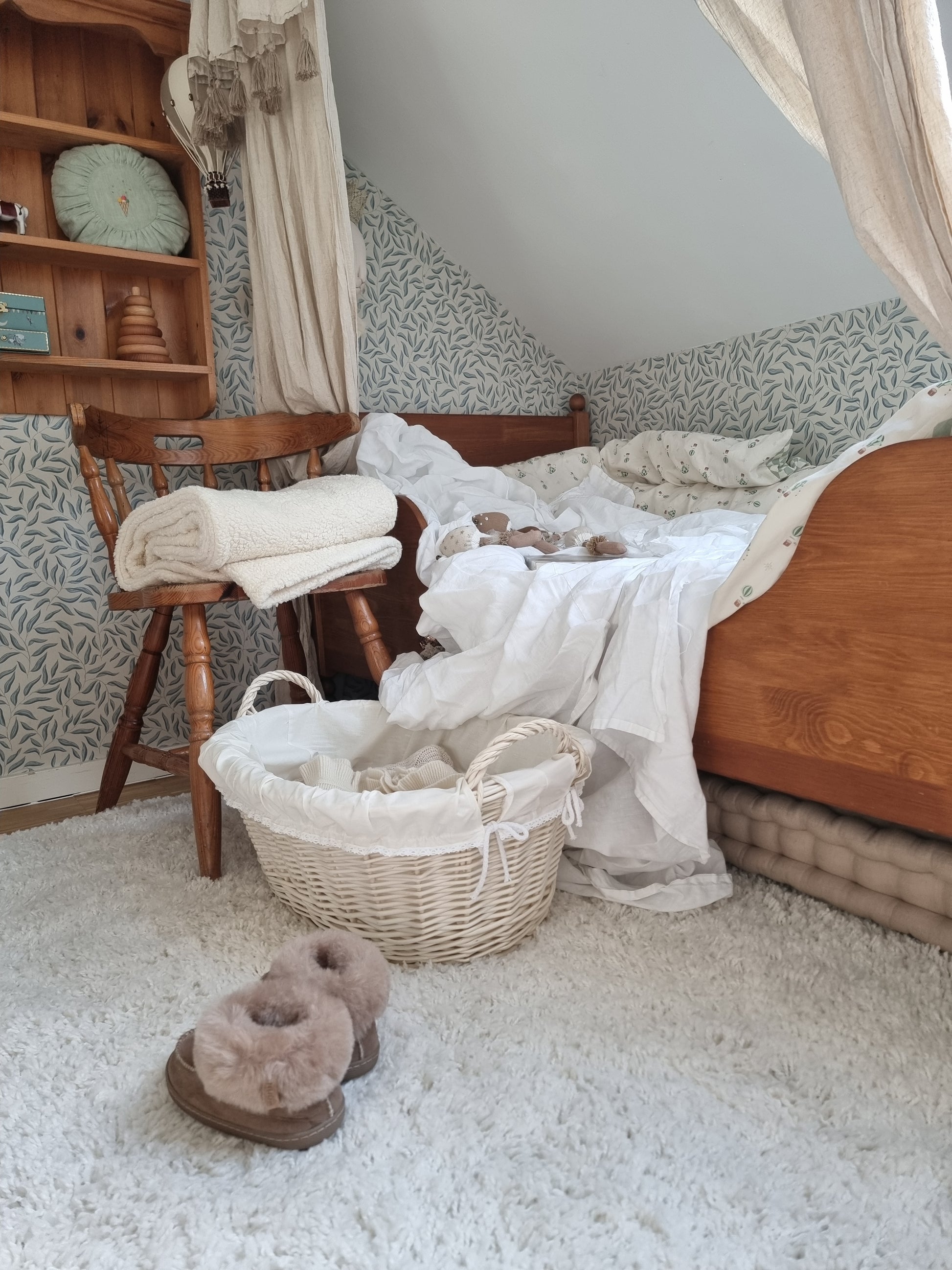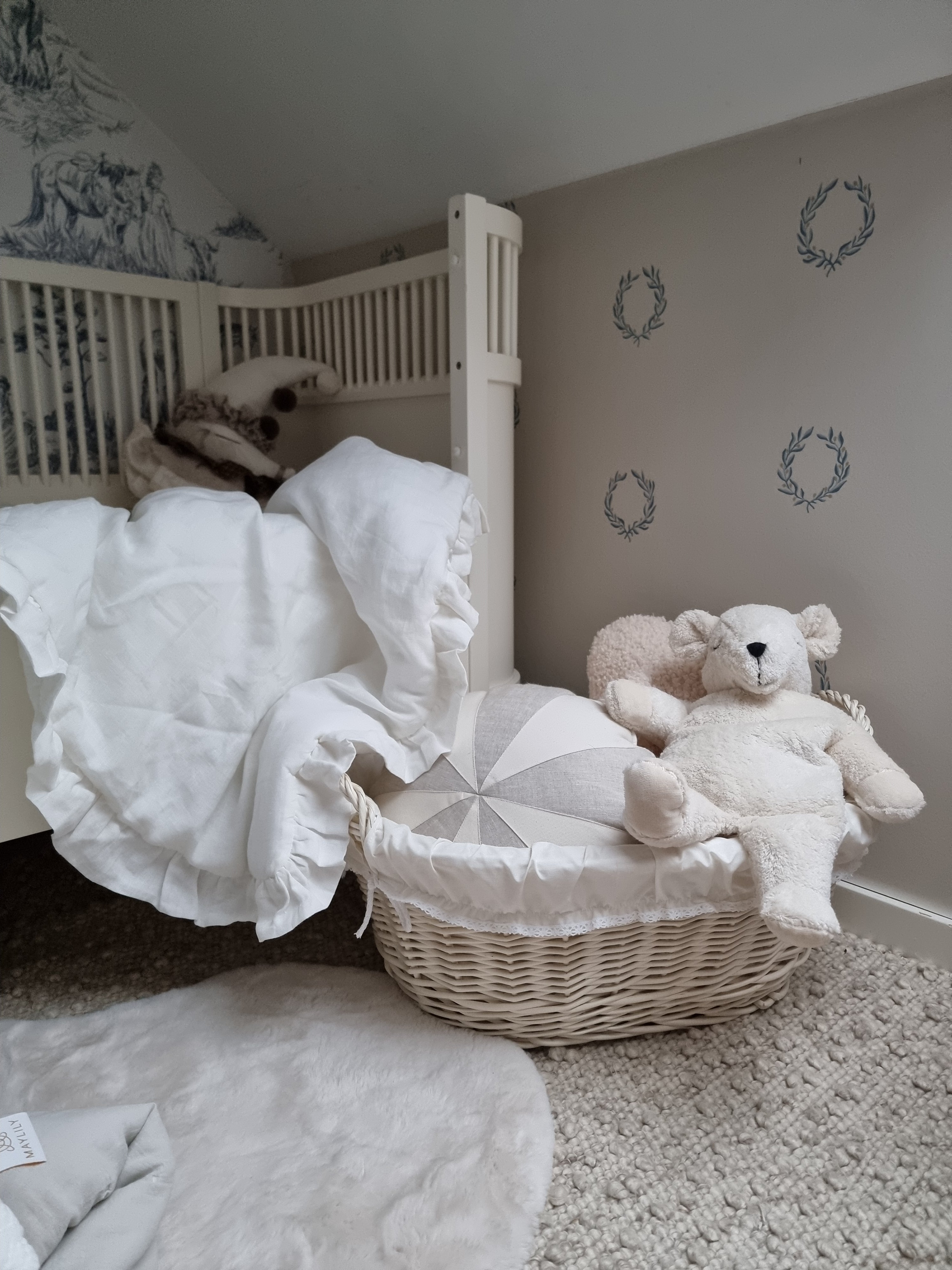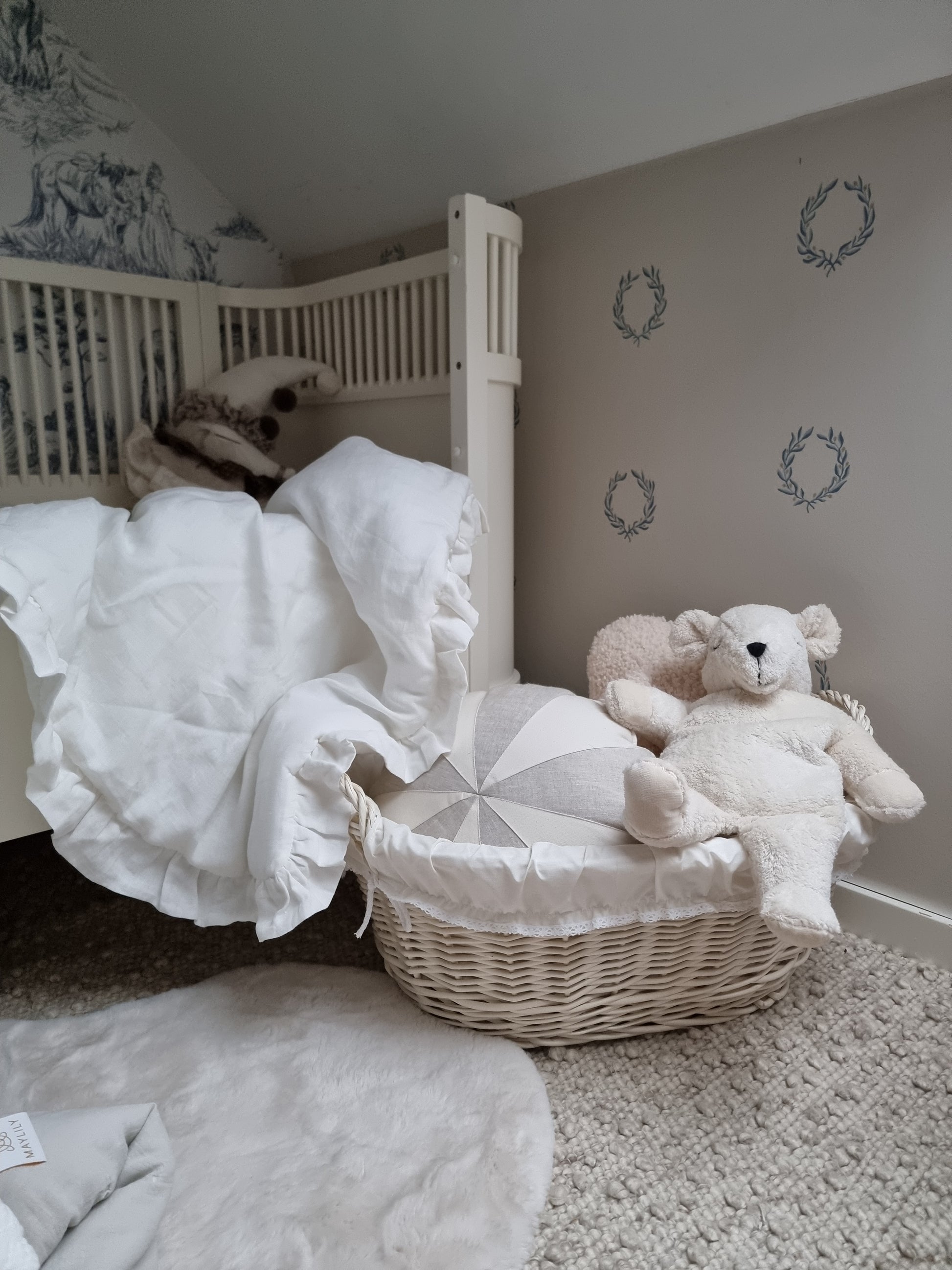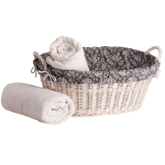 Milvus wiklinowy kosz z szarym obszyciem i uchwytami TheWickerStories