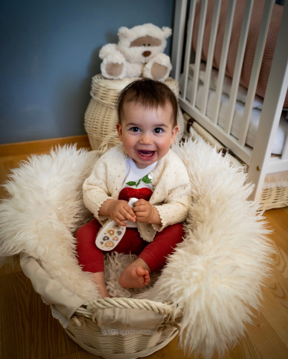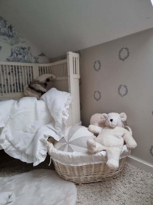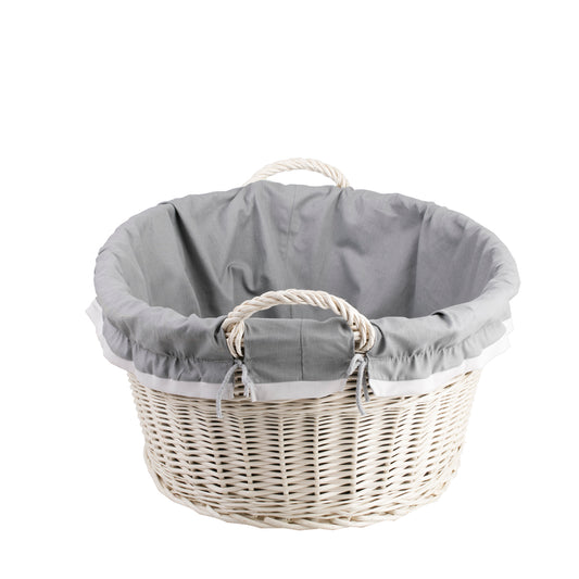 Milvus wiklinowy kosz z szarym obszyciem i uchwytami TheWickerStories