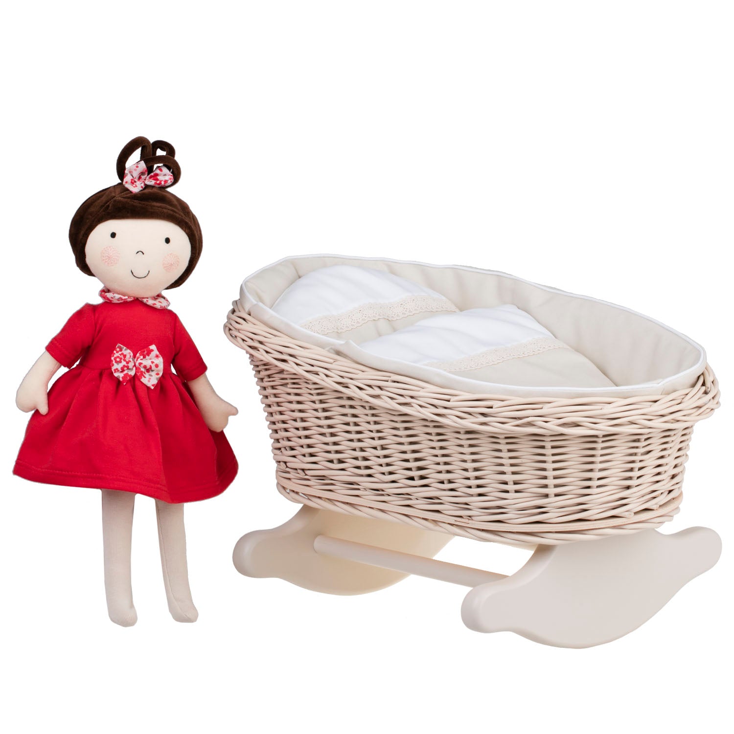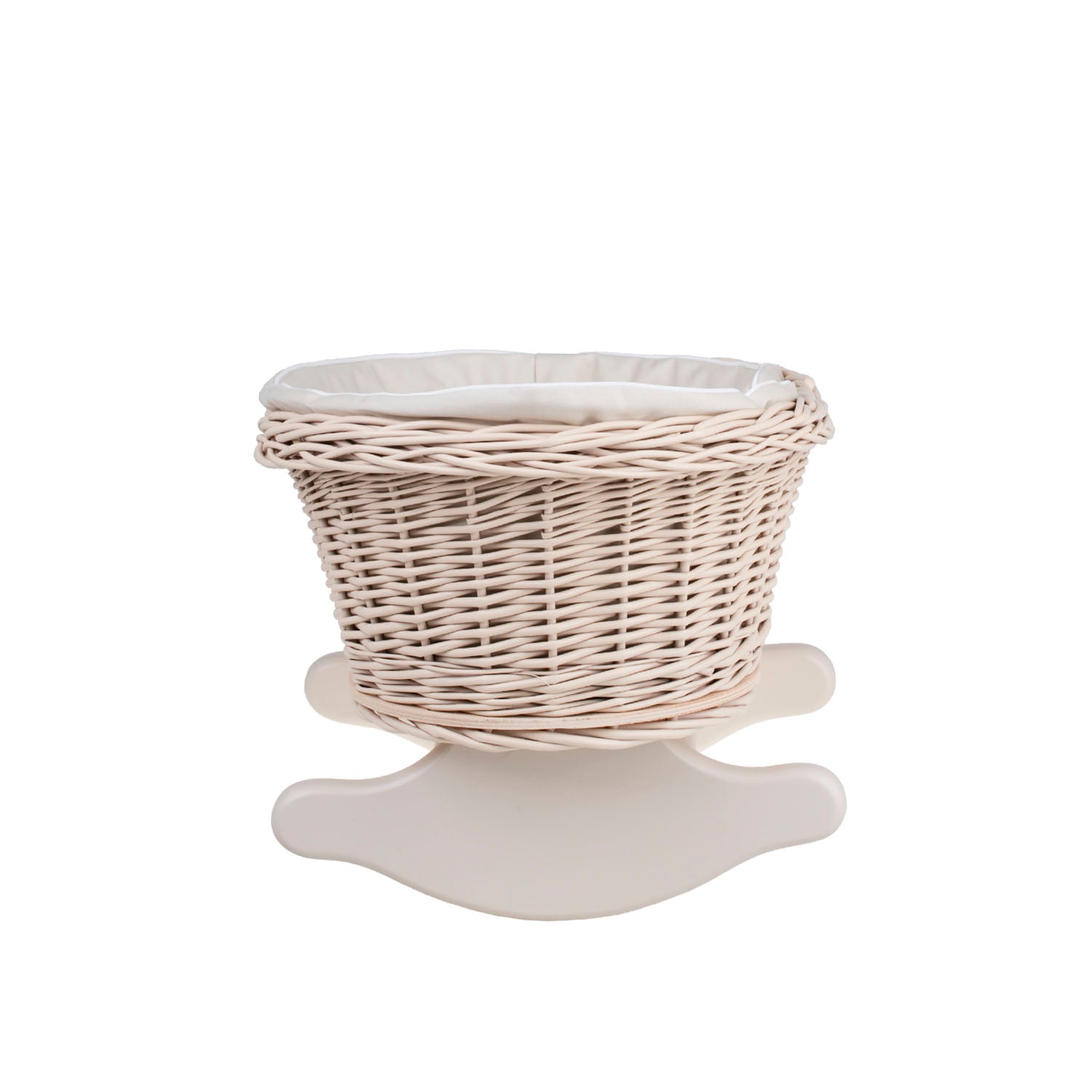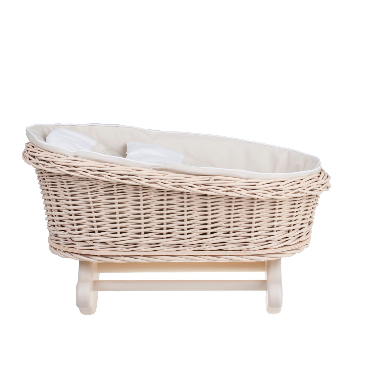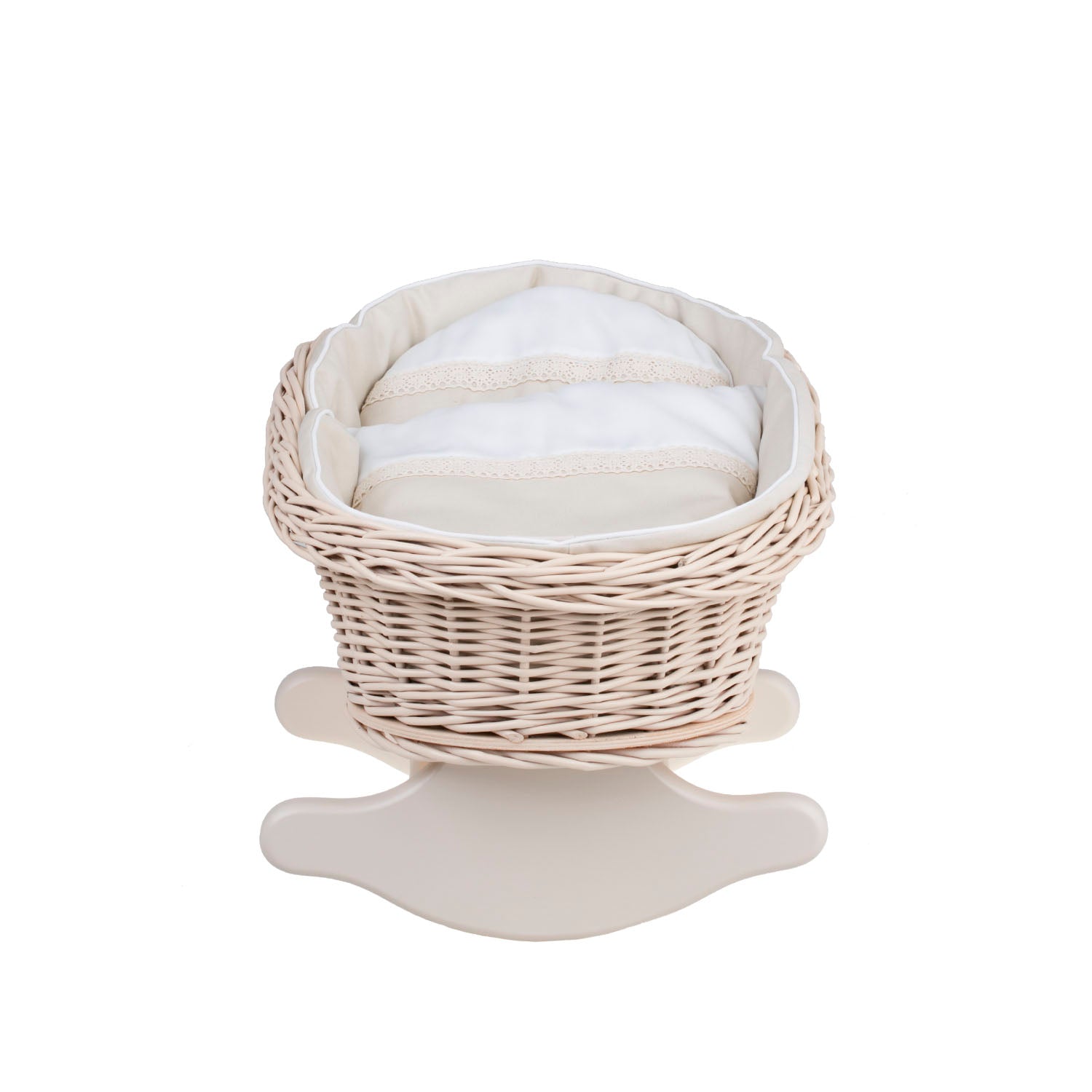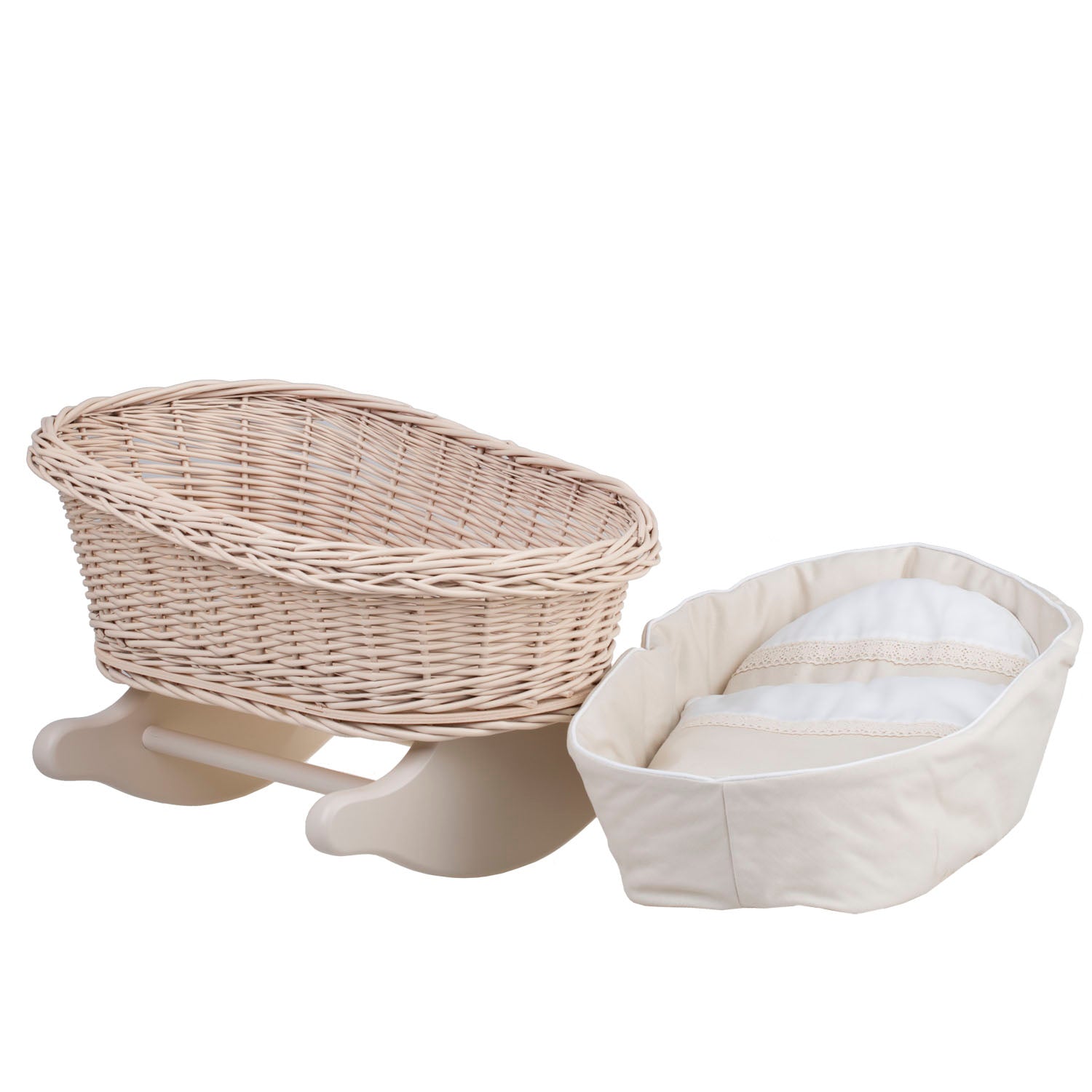 Mimi wiklinowa kołyska dla lalek z beżowym obszyciem, poduszką i kołderką TheWickerStories