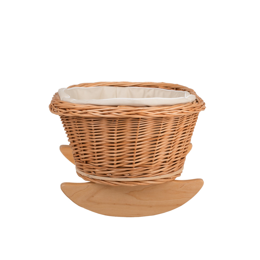 Ta urocza kołyska dla lalek to idealne połączenie tradycyjnego rękodzieła z naturalnymi materiałami i ponadczasowym designem. Ręcznie wyplatana z ekologicznej wikliny i osadzona na stabilnych, bujanych płozach z drewna, przyciąga wzrok i zachwyca estetyką. Kolorystyka i staranne wykończenie sprawiają, że idealnie pasuje do pokoju dziecięcego.