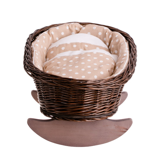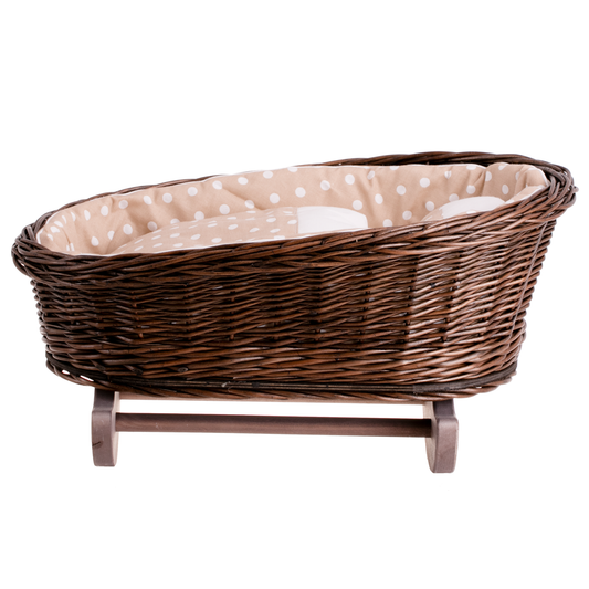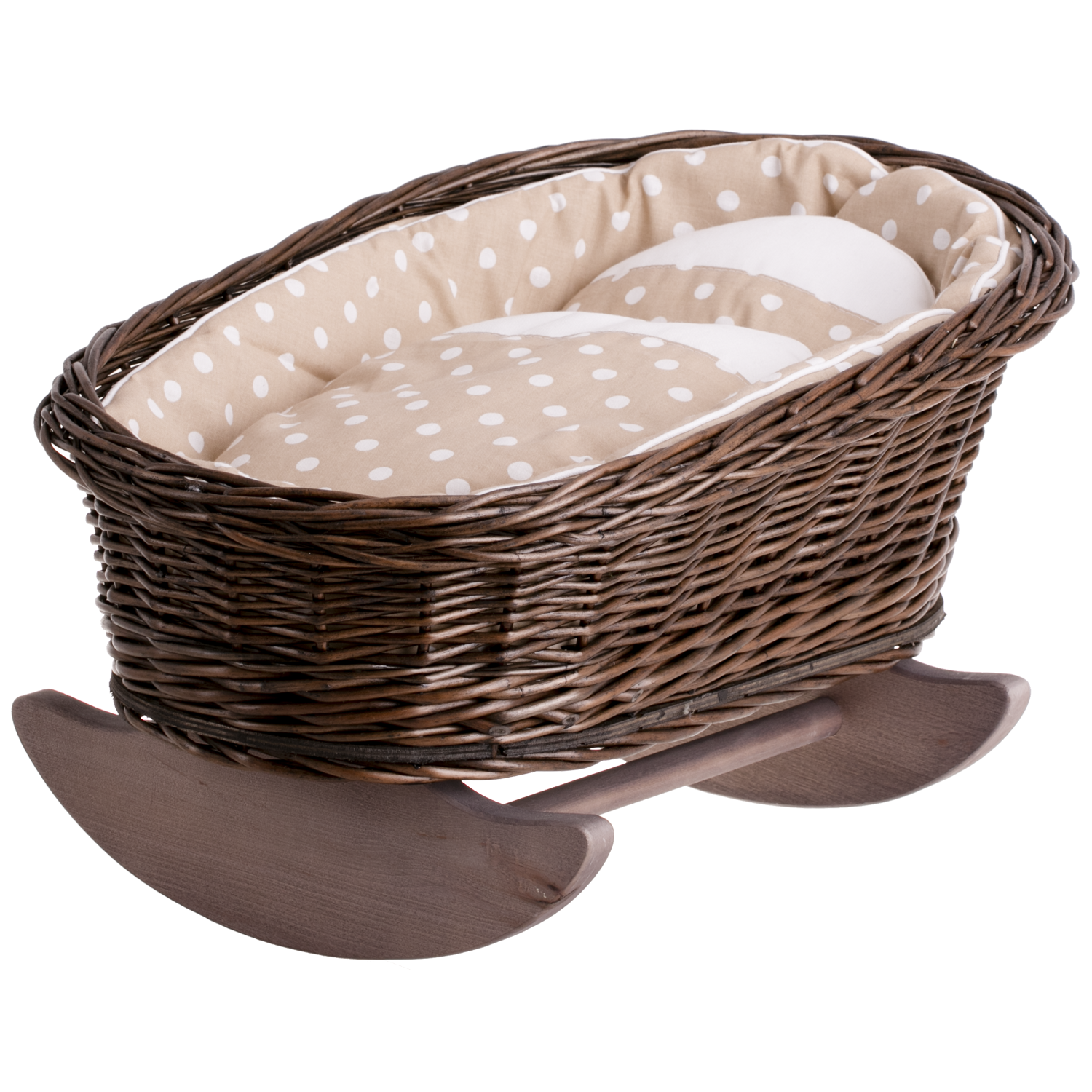 Mimi wiklinowa kołyska dla lalek z beżowym obszyciem, poduszką i kołderką TheWickerStories