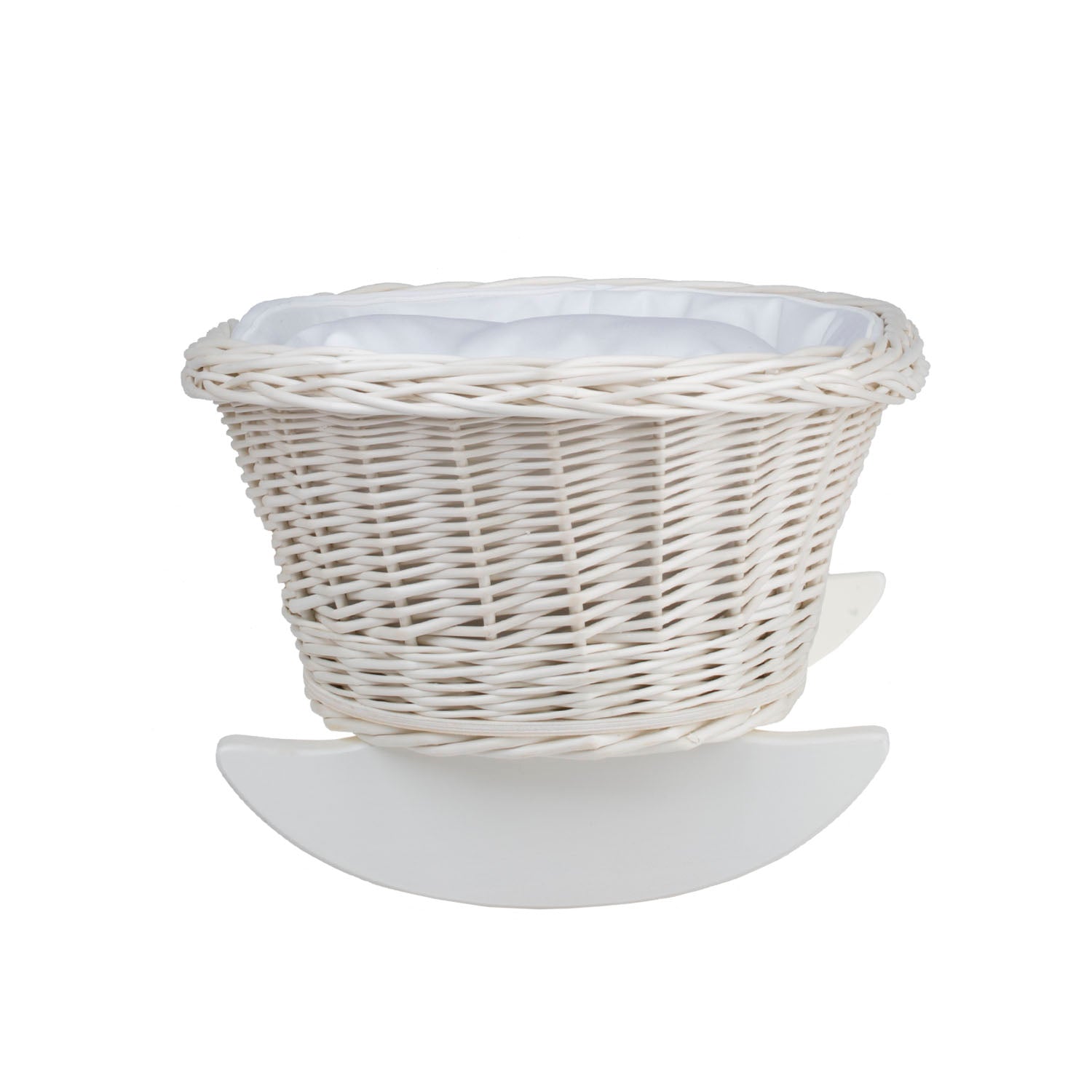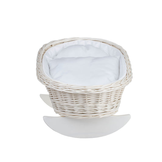 Mimi wiklinowa kołyska dla lalek z białym obszyciem, poduszką i kołderką TheWickerStories