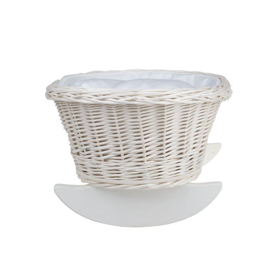 Ta urocza kołyska dla lalek to idealne połączenie tradycyjnego rękodzieła z naturalnymi materiałami i ponadczasowym designem. Ręcznie wyplatana z ekologicznej wikliny i osadzona na stabilnych, bujanych płozach z drewna, przyciąga wzrok i zachwyca estetyką. Kolorystyka i staranne wykończenie sprawiają, że idealnie pasuje do pokoju dziecięcego.
