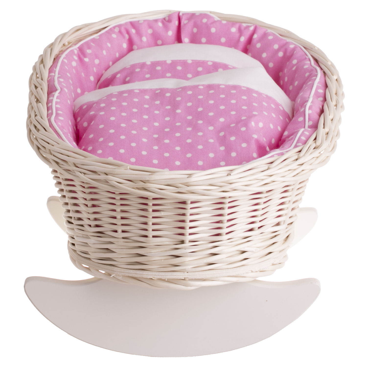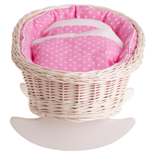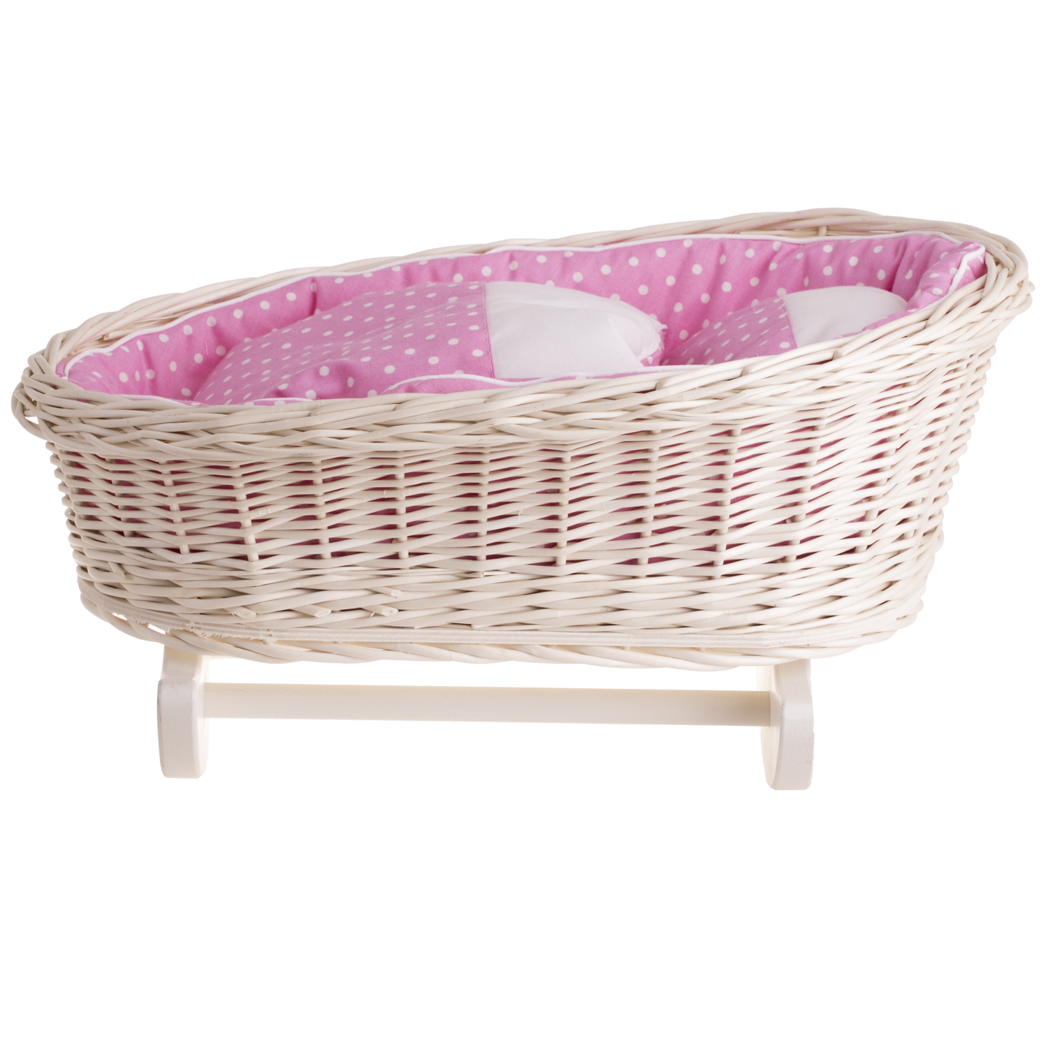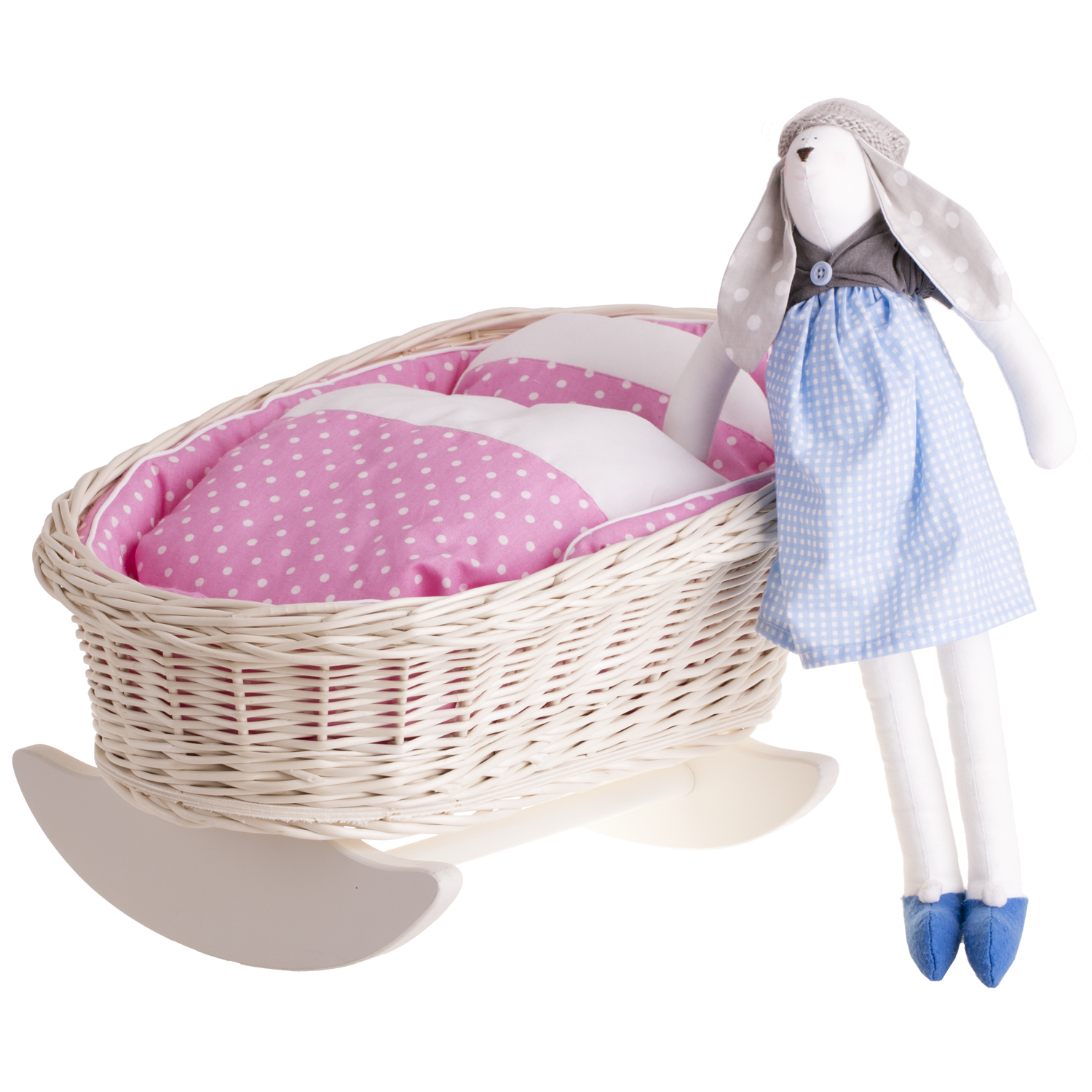 Mimi wiklinowa kołyska z poduszką, kołderką i obszyciem TheWickerStories