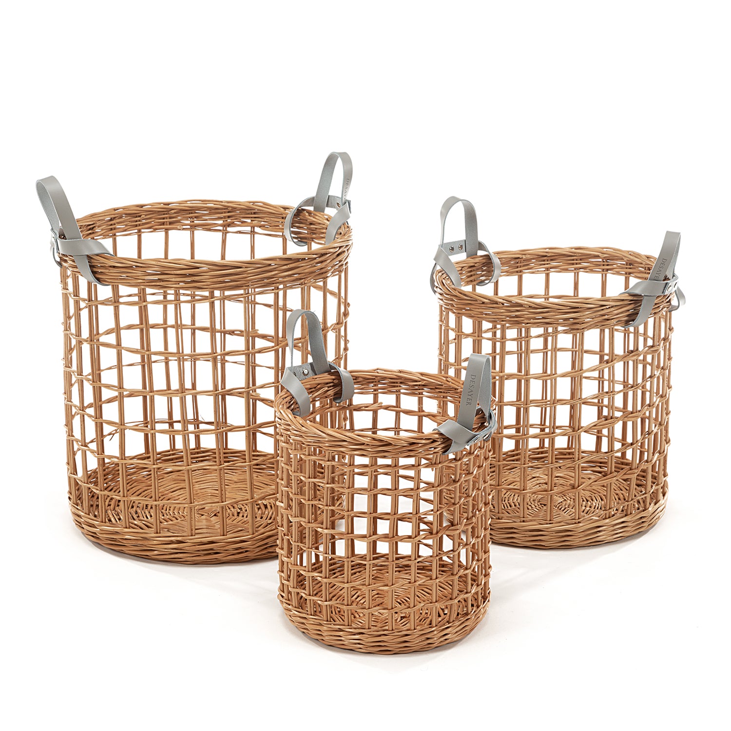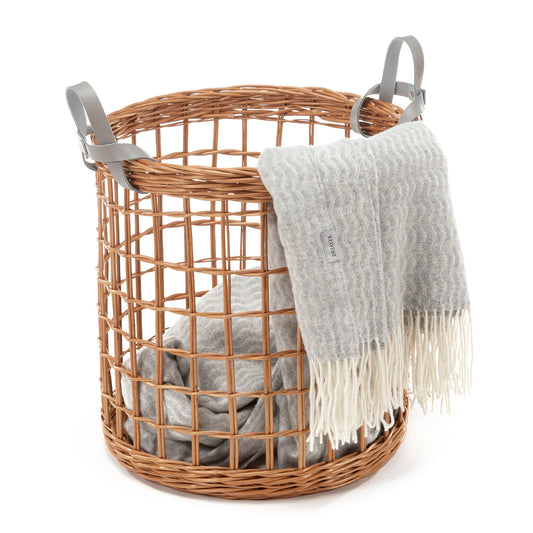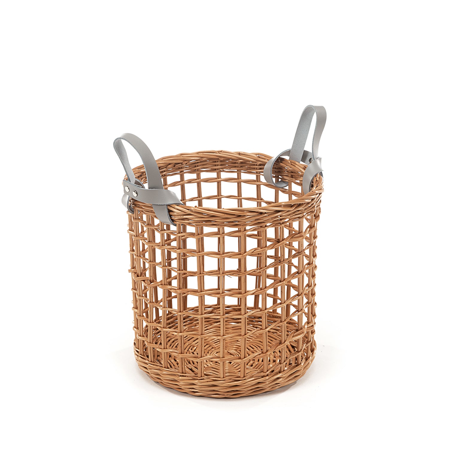 DESAYER to lekki, a jednocześnie solidny kosz wiklinowy z otwartym, ażurowym splotem. Taka forma nadaje mu nowoczesny charakter i zapewnia stały przepływ powietrza. Wzmocniona obręcz i dwa skórzane uchwyty ułatwiają przenoszenie, a równy splot podkreśla elegancką prostotę.