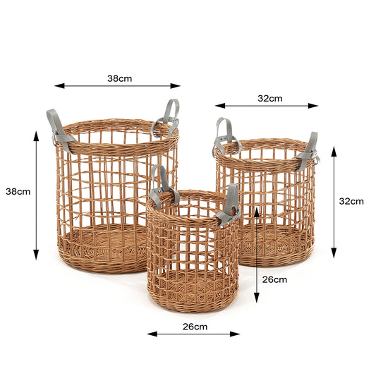 Minoria wiklinowy kosz do przechowywania z dwoma skórzanymi uchwytami TheWickerStories