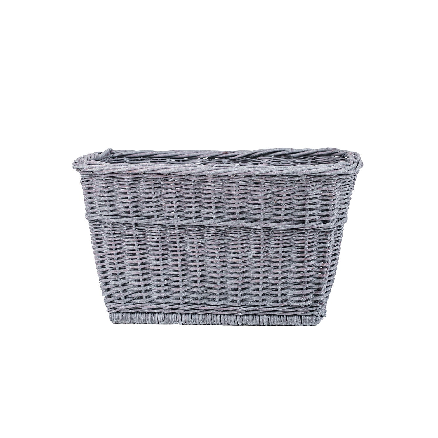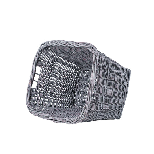 Prostokątny kosz wiklinowy w eleganckim, szarym odcieniu to praktyczny dodatek do kuchni, jadalni lub sklepu. Gęsty i równy splot tworzy stabilne ścianki, a płaski spód zapewnia dobry kontakt z blatem czy półką. Subtelne wykończenie brzegów nadaje całości estetyczny wygląd, który pasuje zarówno do wnętrz nowoczesnych, jak i rustykalnych. Neutralna kolorystyka ułatwia łączenie z innymi organizerami.