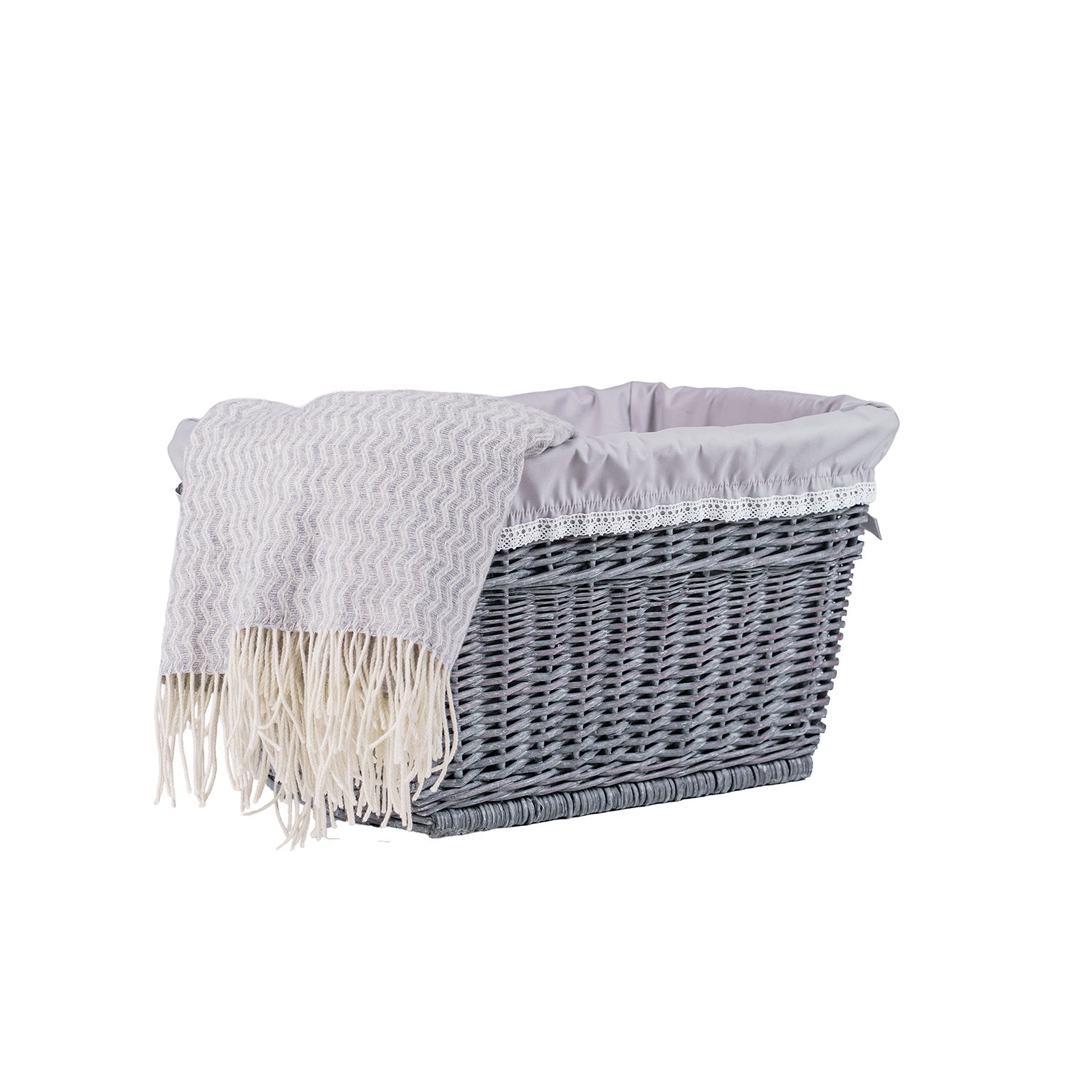 Mivella wiklinowy kosz do przechowywania z szarym obszyciem TheWickerStories