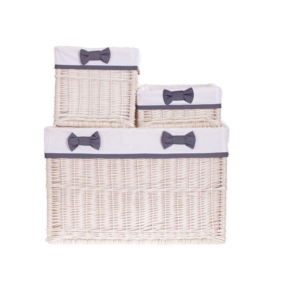 Nova wiklinowy kosz do przechowywania z białym obszyciem, zestaw 3 szt., z kokardami TheWickerStories