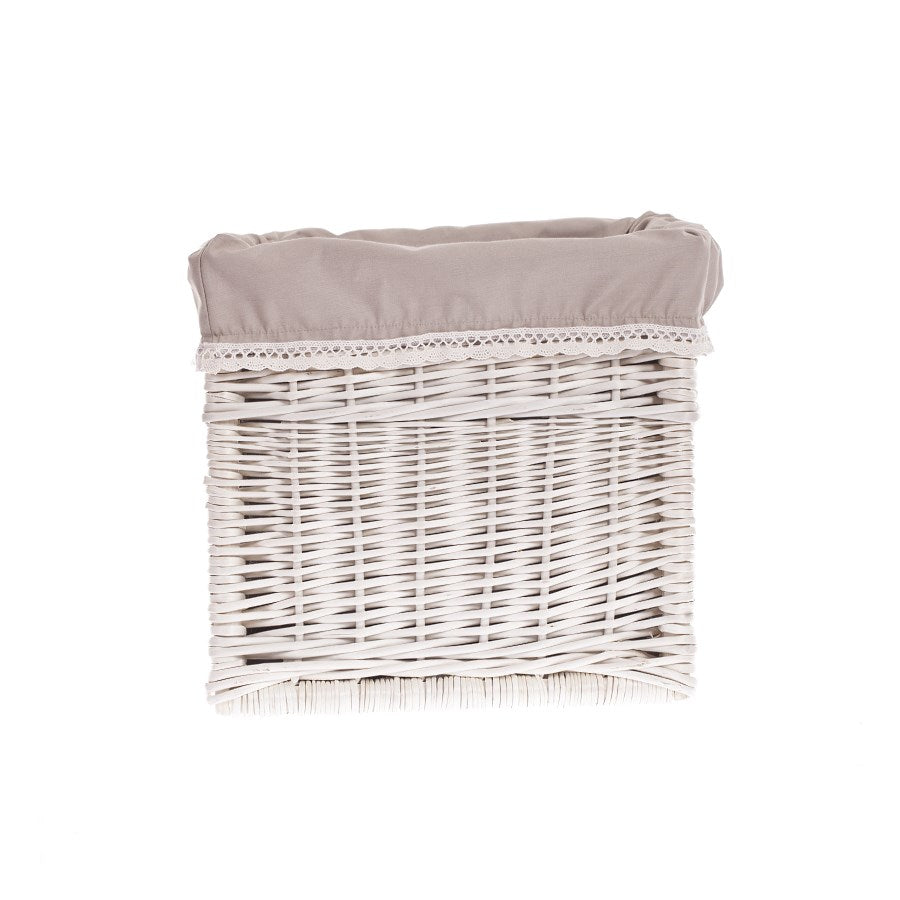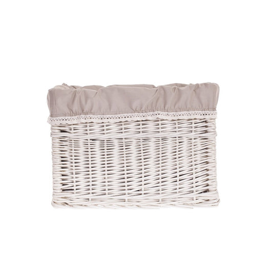 Nova wiklinowy kosz do przechowywania z szarym obszyciem, z kokardką TheWickerStories