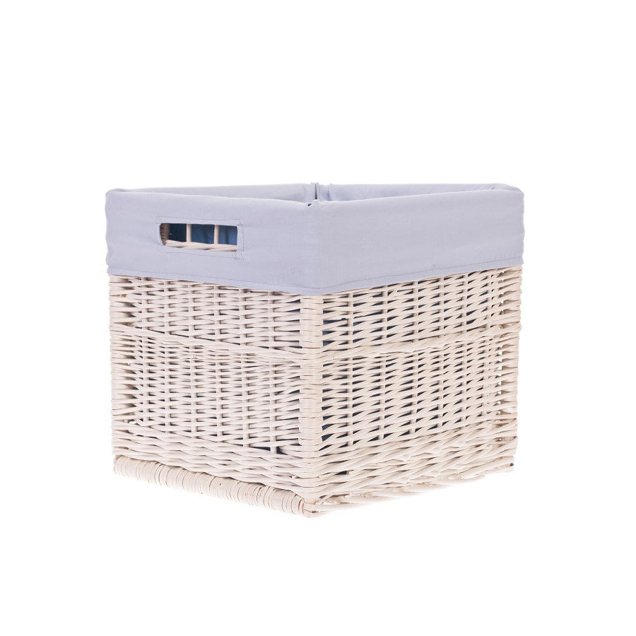 Nova wiklinowy kosz do przechowywania z szarym obszyciem, z uchwytami TheWickerStories