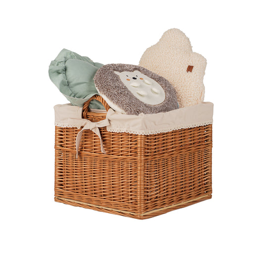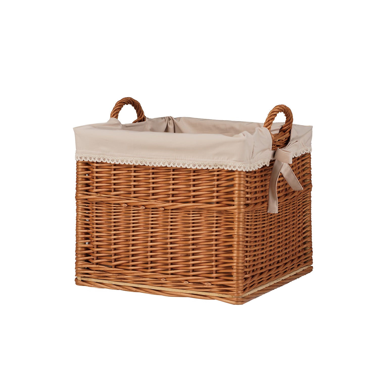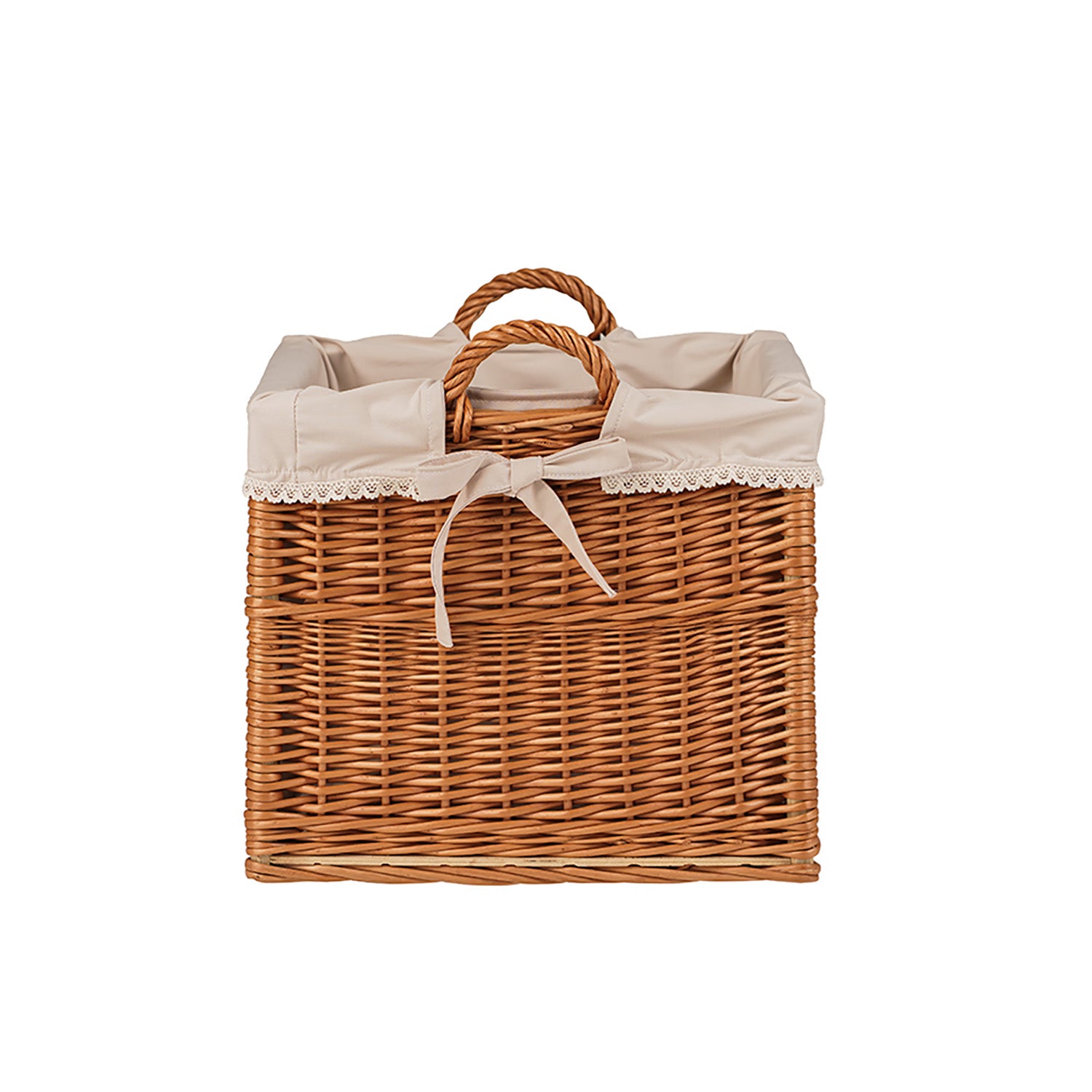 Nova wiklinowy koszyczek z beżowym obszyciem i uchwytami TheWickerStories