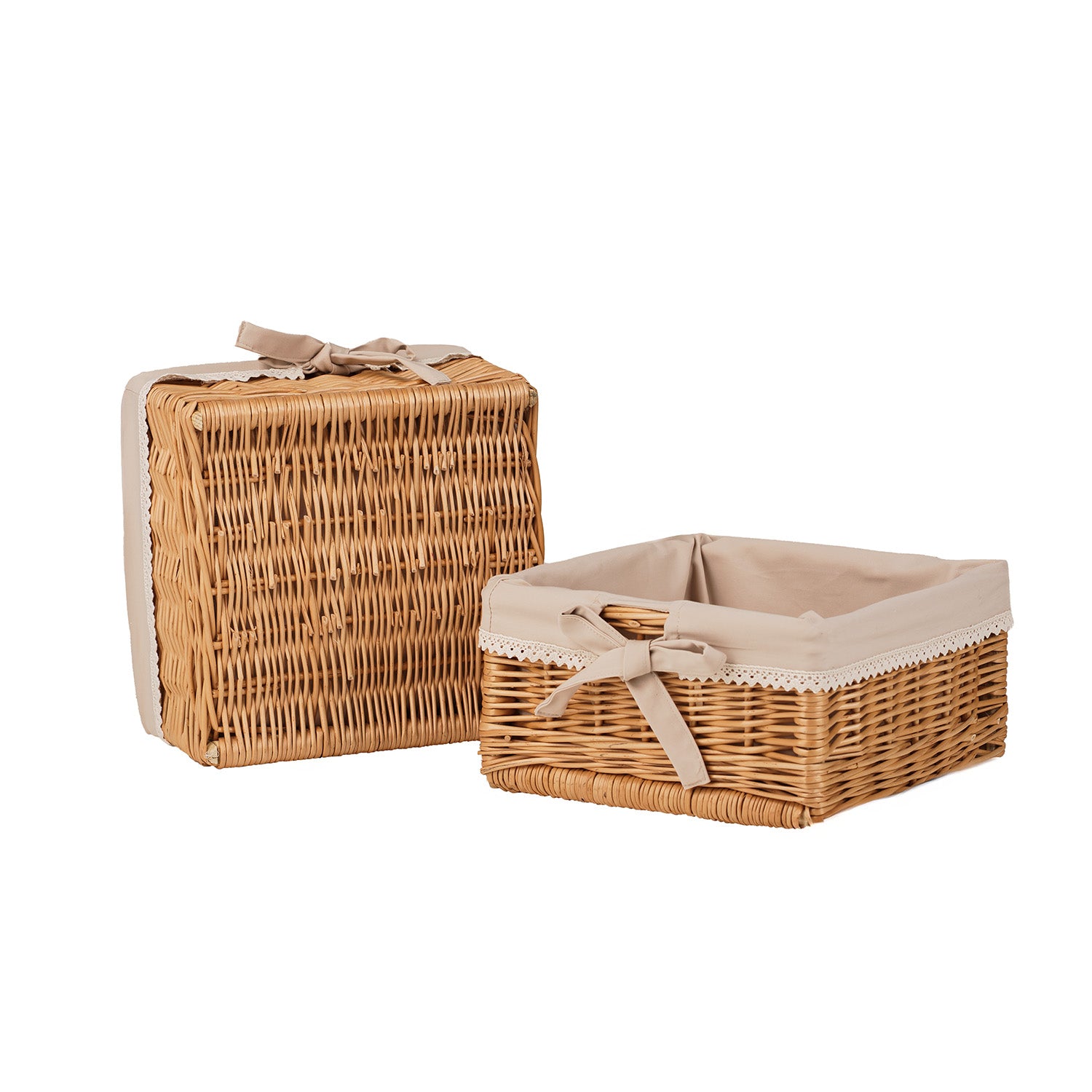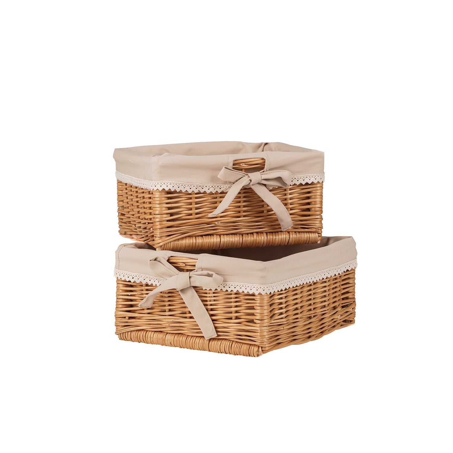 Nova zestaw 2 wiklinowych koszyczków z beżowym obszyciem