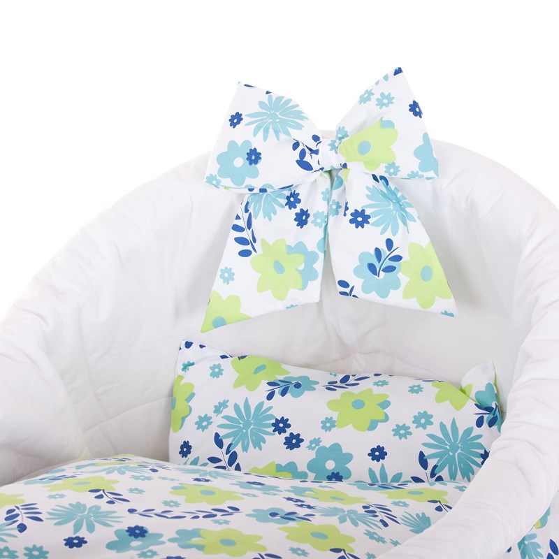 W dolnej części znajduje się drugi, pojemny kosz na akcesoria – pieluszki, kocyki czy zabawki – z dopasowanym obszyciem. W zestawie otrzymujesz materac 70x38 cm, kołderkę 80x80 cm i poduszkę 30x40 cm wraz z wypełnieniami oraz prześcieradło. Wózek ma ok. 98x61 cm, mieści się w drzwiach, a później kosz posłuży jako praktyczny organizer na pranie lub zabawki. Tekstylia są łatwe do utrzymania w czystości.