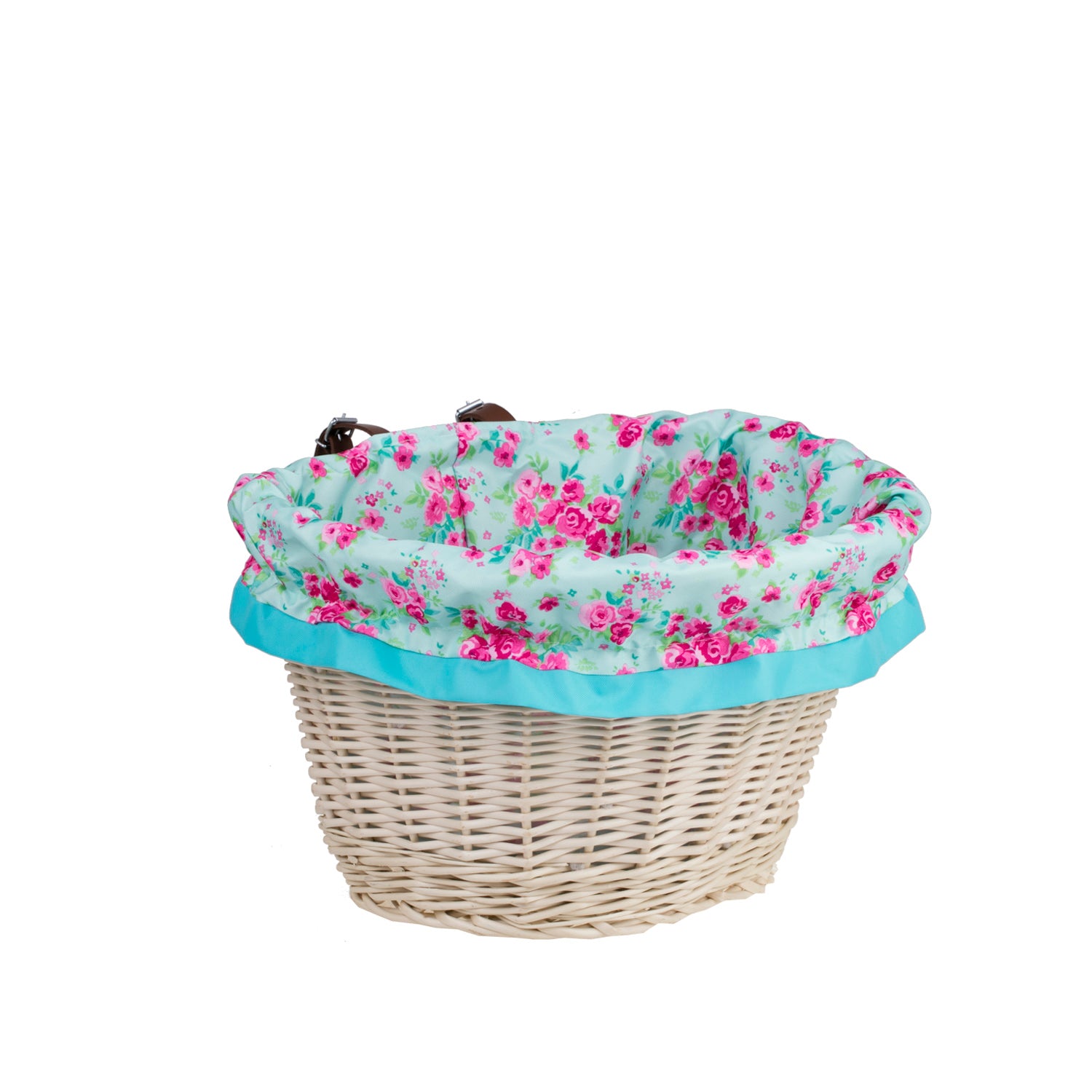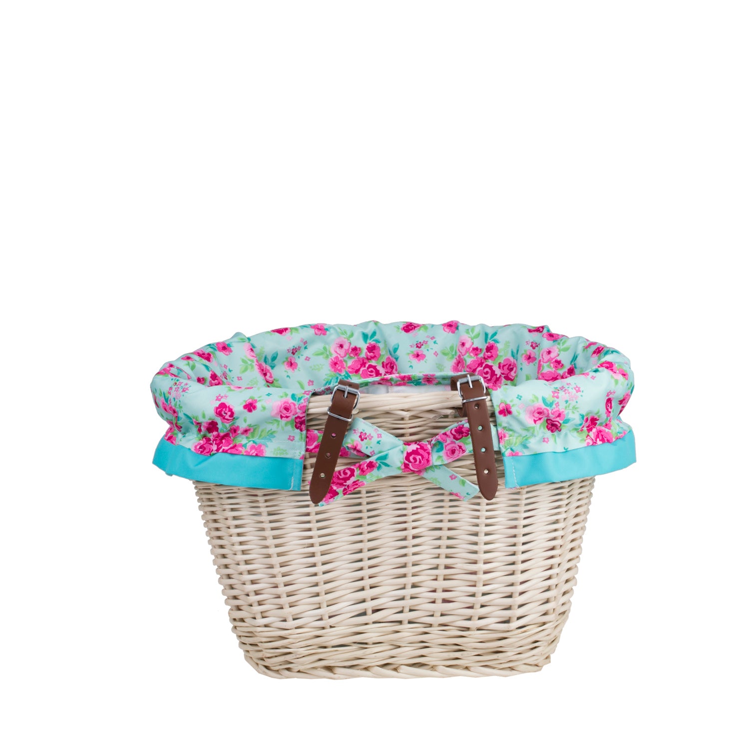 Paulus wiklinowy kosz na rower na kierownicę z turkusowym obszyciem, z paskami TheWickerStories