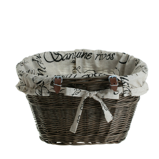 Paulus wiklinowy kosz na rower z beżowym obszyciem, z paskami TheWickerStories