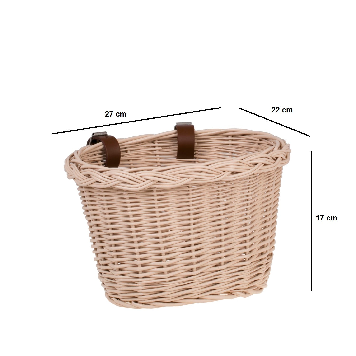 Koszyk mocowany jest za pomocą dwóch skórzanych pasków, których długość można regulować – co pozwala na łatwe dopasowanie do różnych modeli kierownic. Solidne paski zapewniają stabilność w czasie jazdy, a dzięki nim koszyk można także łatwo zdjąć i ponownie zamontować. To praktyczne rozwiązanie, które sprawdzi się zarówno podczas codziennych przejażdżek, jak i rodzinnych wypraw.