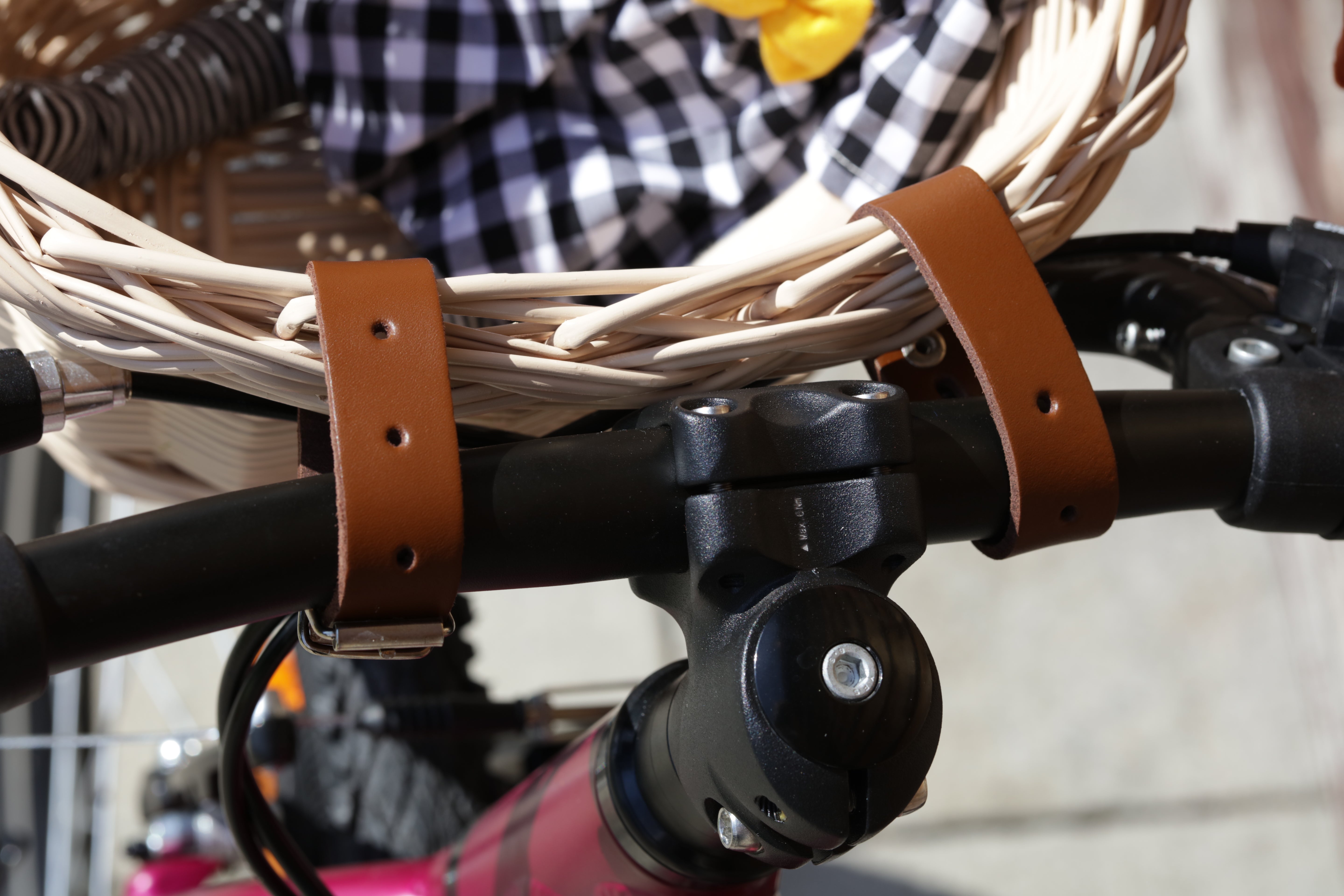 Koszyk mocowany jest za pomocą dwóch skórzanych pasków, których długość można regulować – co pozwala na łatwe dopasowanie do różnych modeli kierownic. Solidne paski zapewniają stabilność w czasie jazdy, a dzięki nim koszyk można także łatwo zdjąć i ponownie zamontować. To praktyczne rozwiązanie, które sprawdzi się zarówno podczas codziennych przejażdżek, jak i rodzinnych wypraw.