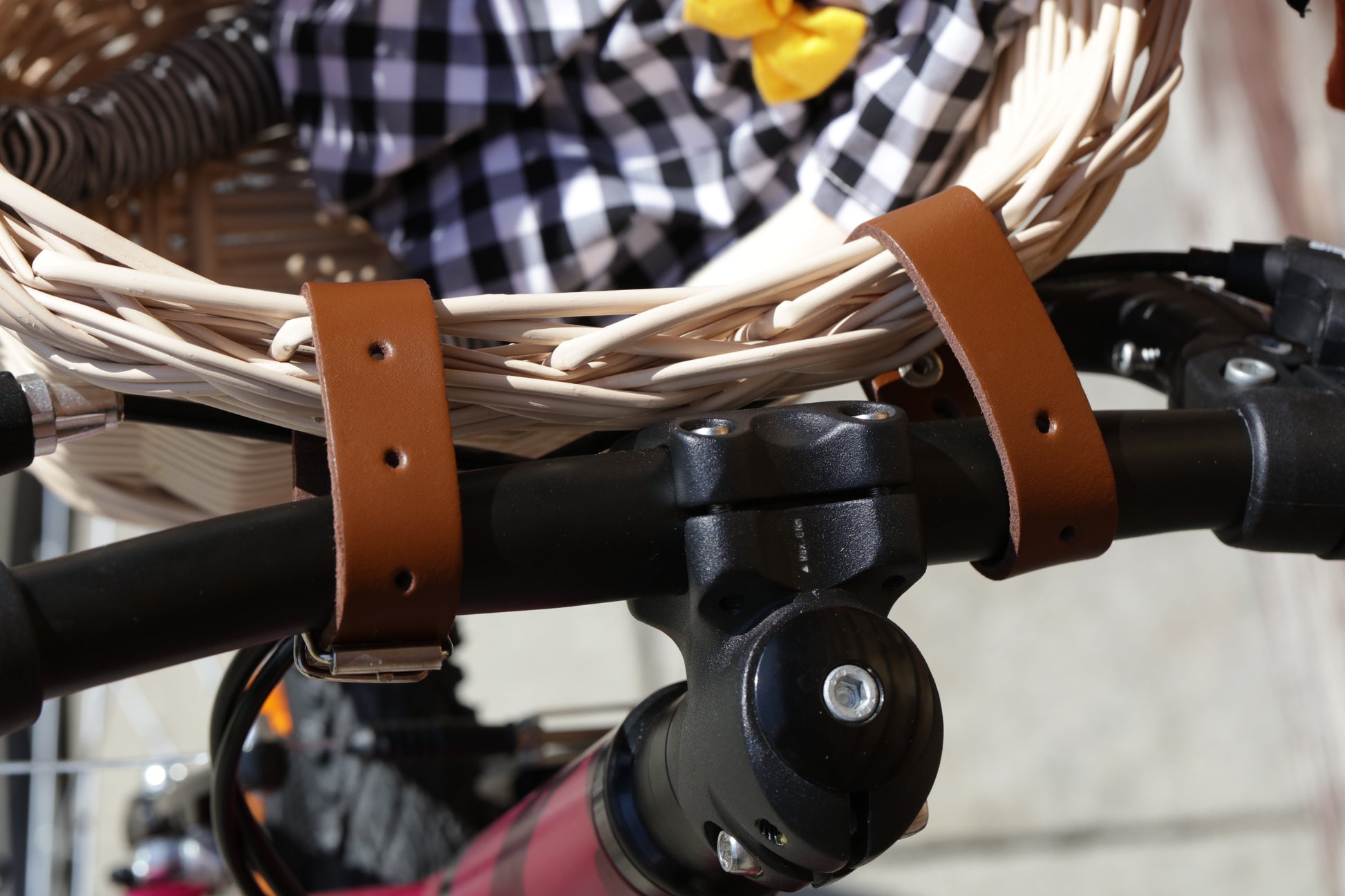Koszyk mocowany jest za pomocą dwóch skórzanych pasków, których długość można regulować – co pozwala na łatwe dopasowanie do różnych modeli kierownic. Solidne paski zapewniają stabilność w czasie jazdy, a dzięki nim koszyk można także łatwo zdjąć i ponownie zamontować. To praktyczne rozwiązanie, które sprawdzi się zarówno podczas codziennych przejażdżek, jak i rodzinnych wypraw.