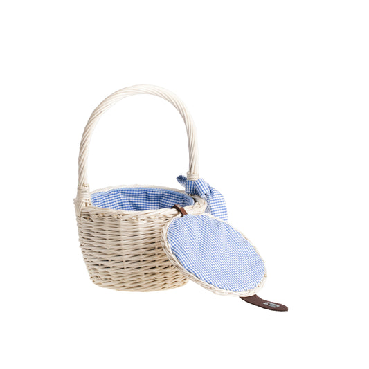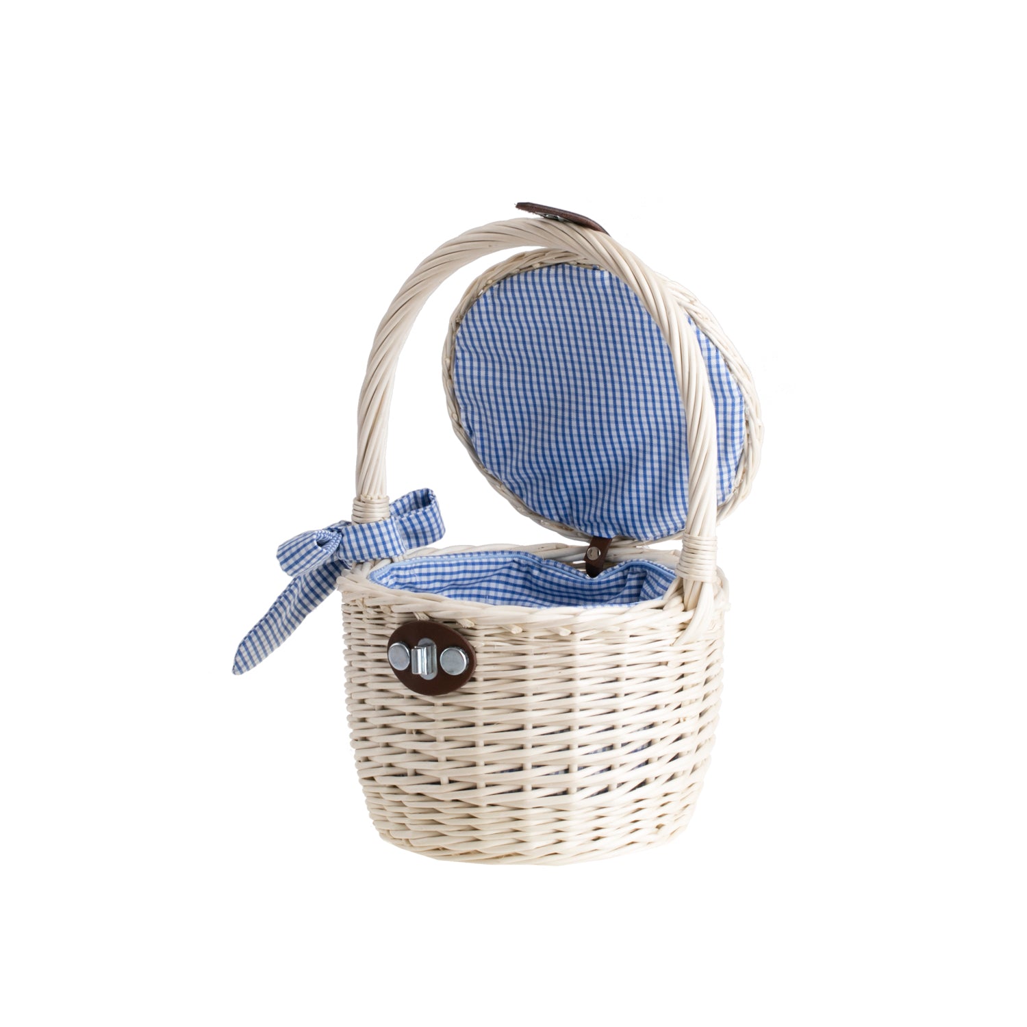 Specyfikacja Twojego Rivora wiklinowa torebka na plażę i zakupy z niebieskim obszyciem, z pokrywą i rączką TheWickerStories
