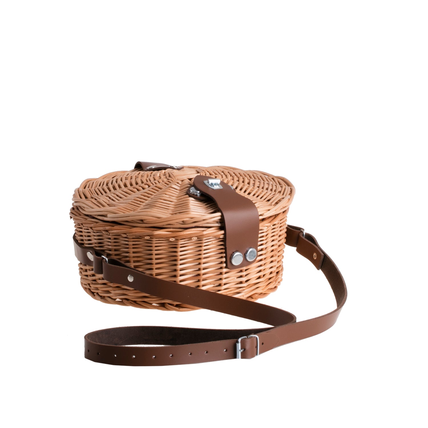 Specyfikacja Twojego Rivora wiklinowy kosz na ramię na zakupy i plażę, z pokrywą i skórzanym paskiem TheWickerStories