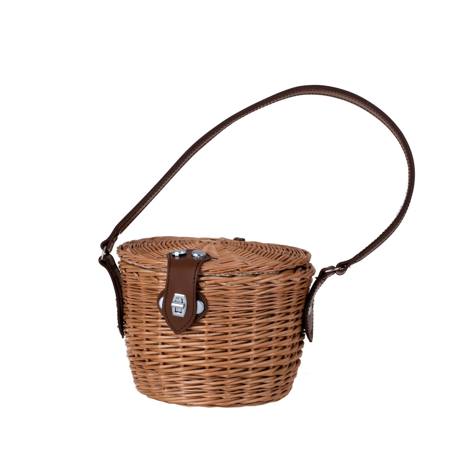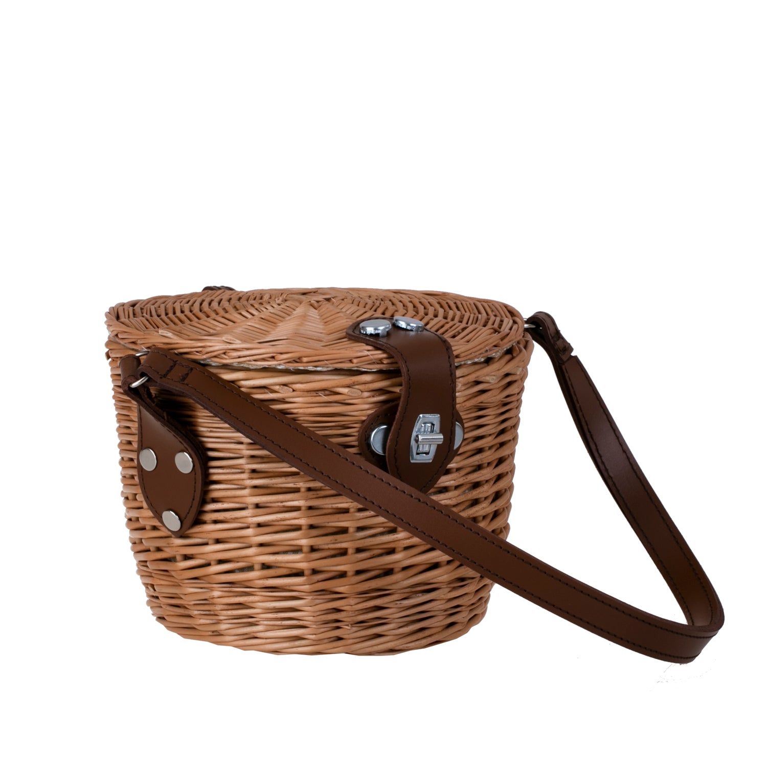 Rivora wiklinowy kosz-torebka na ramię z pokrywą i skórzanym paskiem TheWickerStories