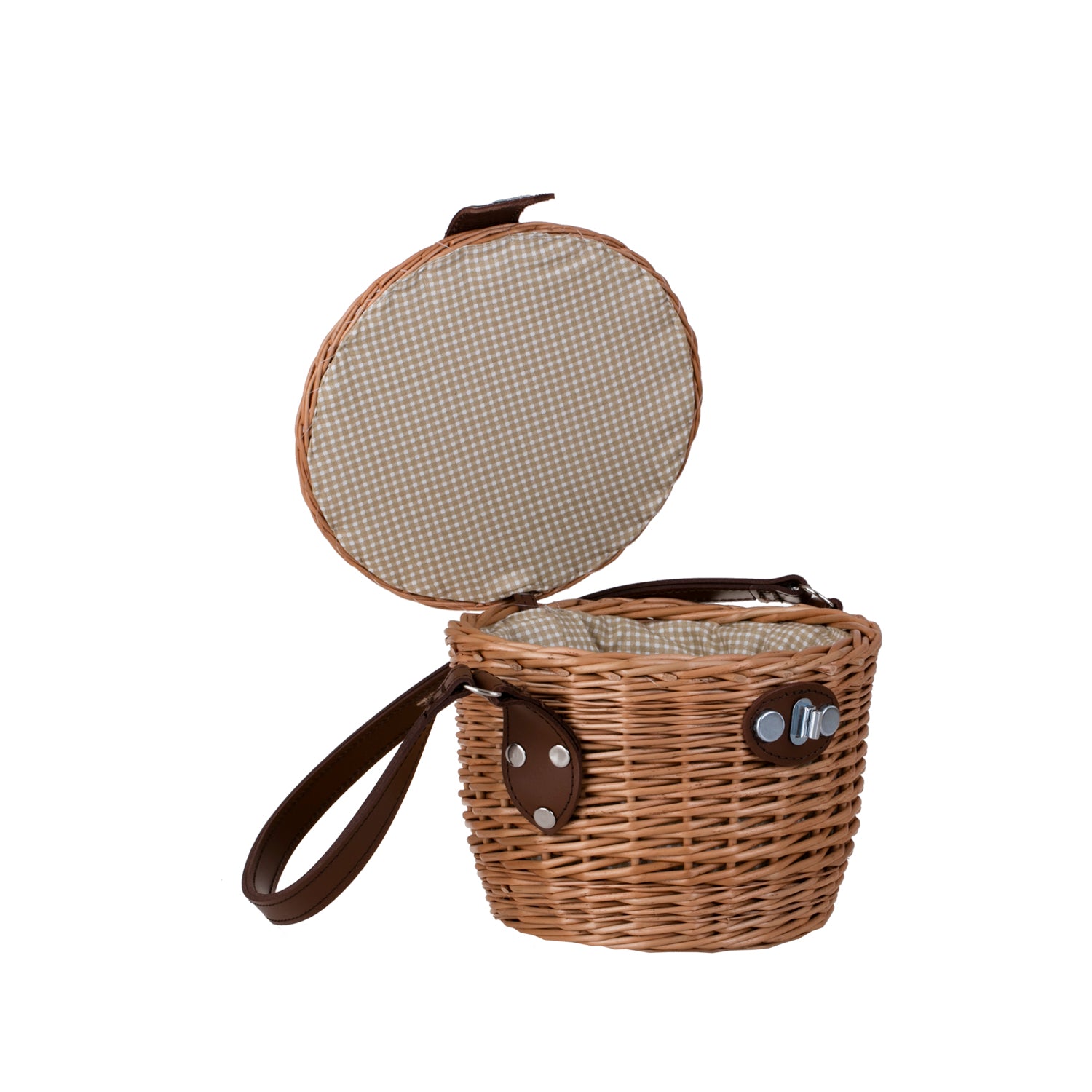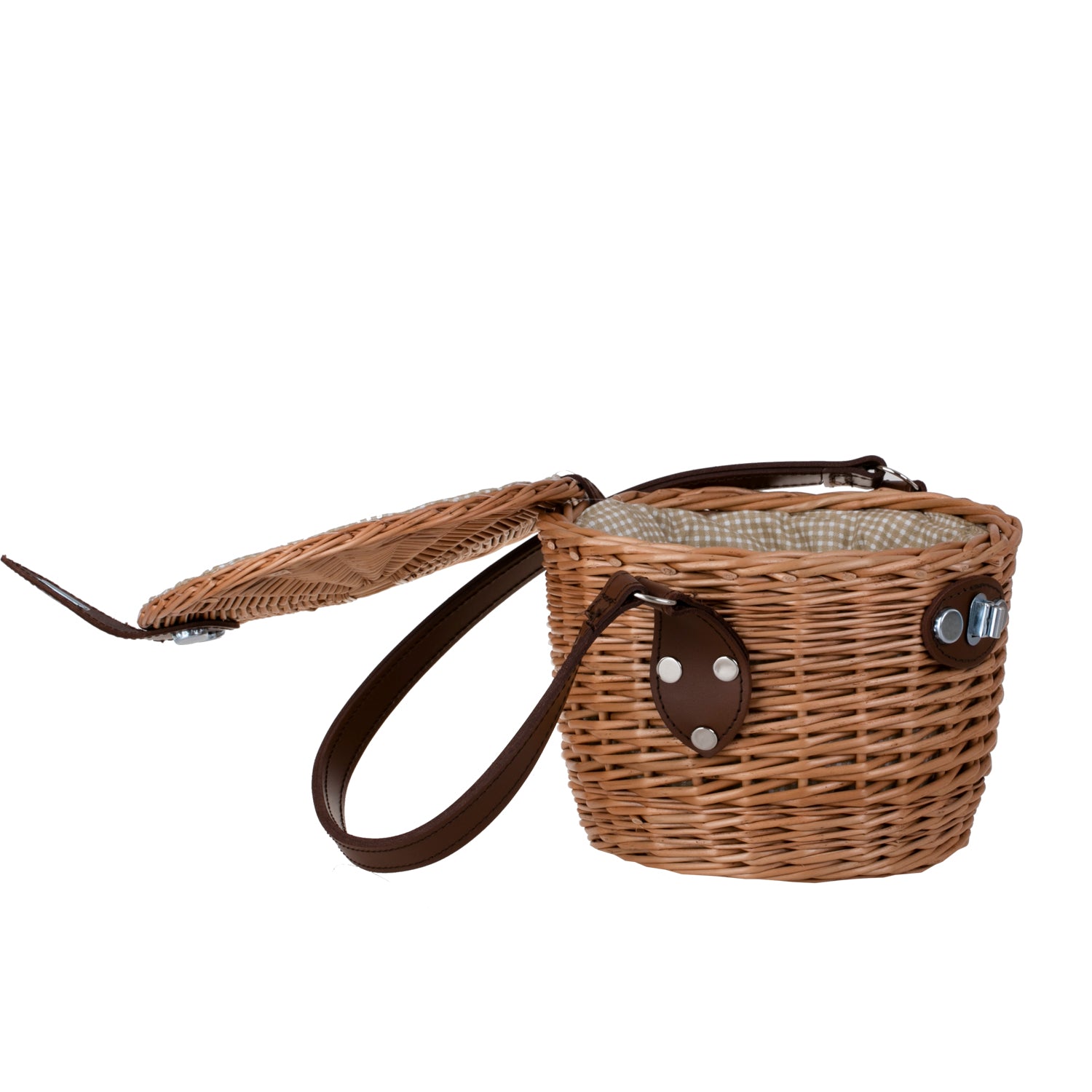 Specyfikacja Twojego Rivora wiklinowy kosz-torebka na ramię z pokrywą i skórzanym paskiem TheWickerStories
