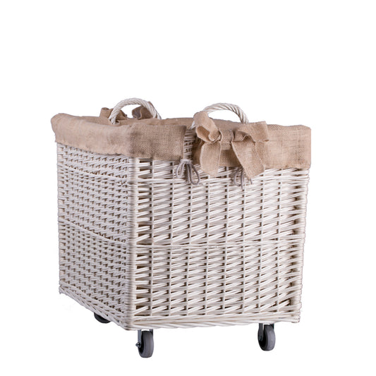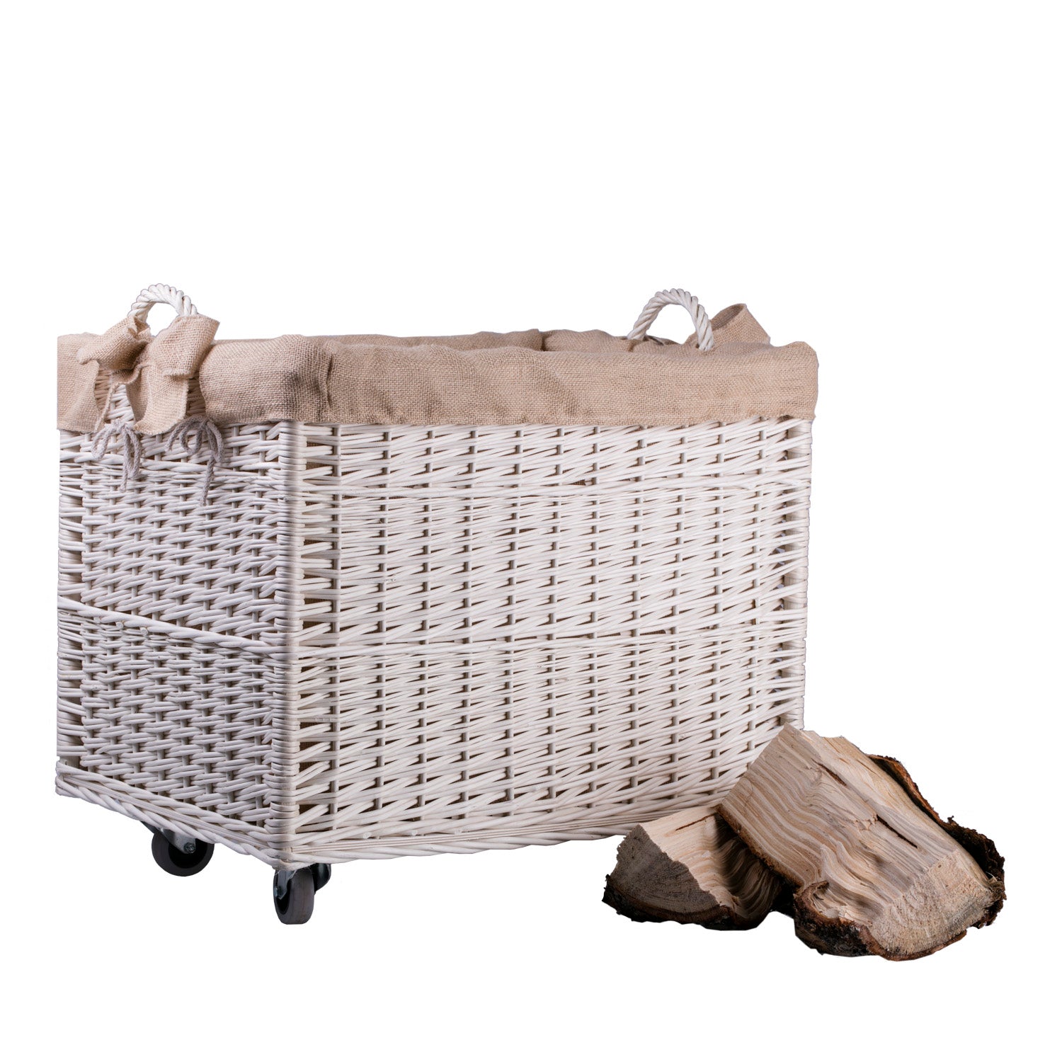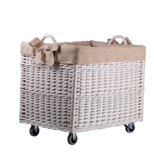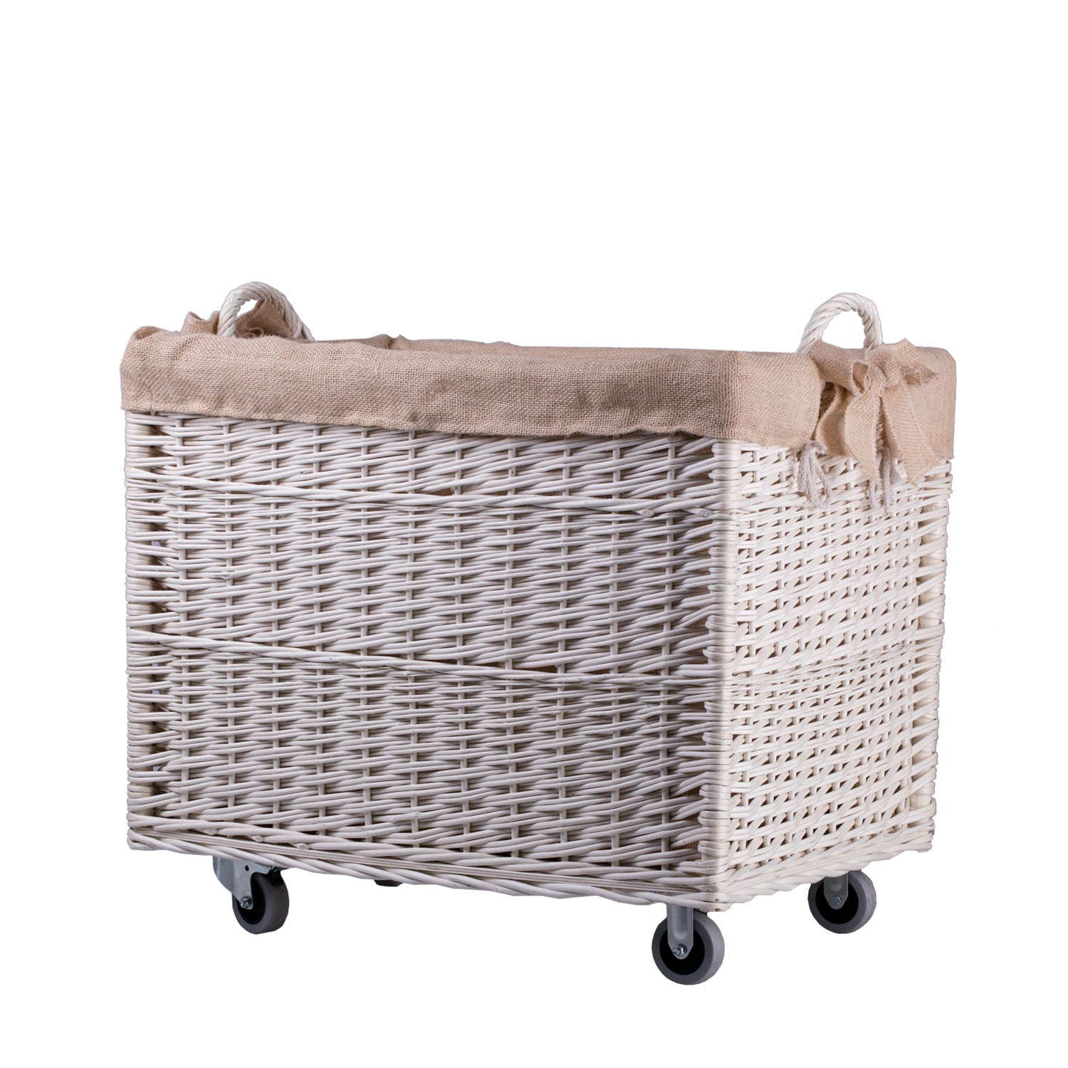 Salux wiklinowy kosz do przechowywania z jutowym obszyciem, z uchwytami i kółkami TheWickerStories