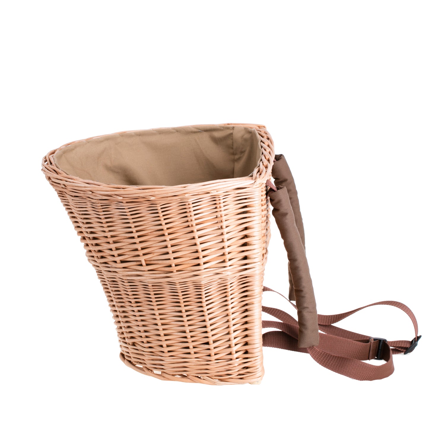 Plecak powstaje w Polsce, w lokalnych warsztatach z wieloletnią tradycją wyplatania wikliny. Wymiary 40x34 cm u góry, 27x17 cm u podstawy oraz 42 cm wysokości gwarantują odpowiednią pojemność przy zachowaniu wygody użytkowania. Doskonale sprawdzi się podczas sezonowych zbiorów, pikników, a także jako ekologiczna alternatywa dla plastikowych koszy zakupowych.
