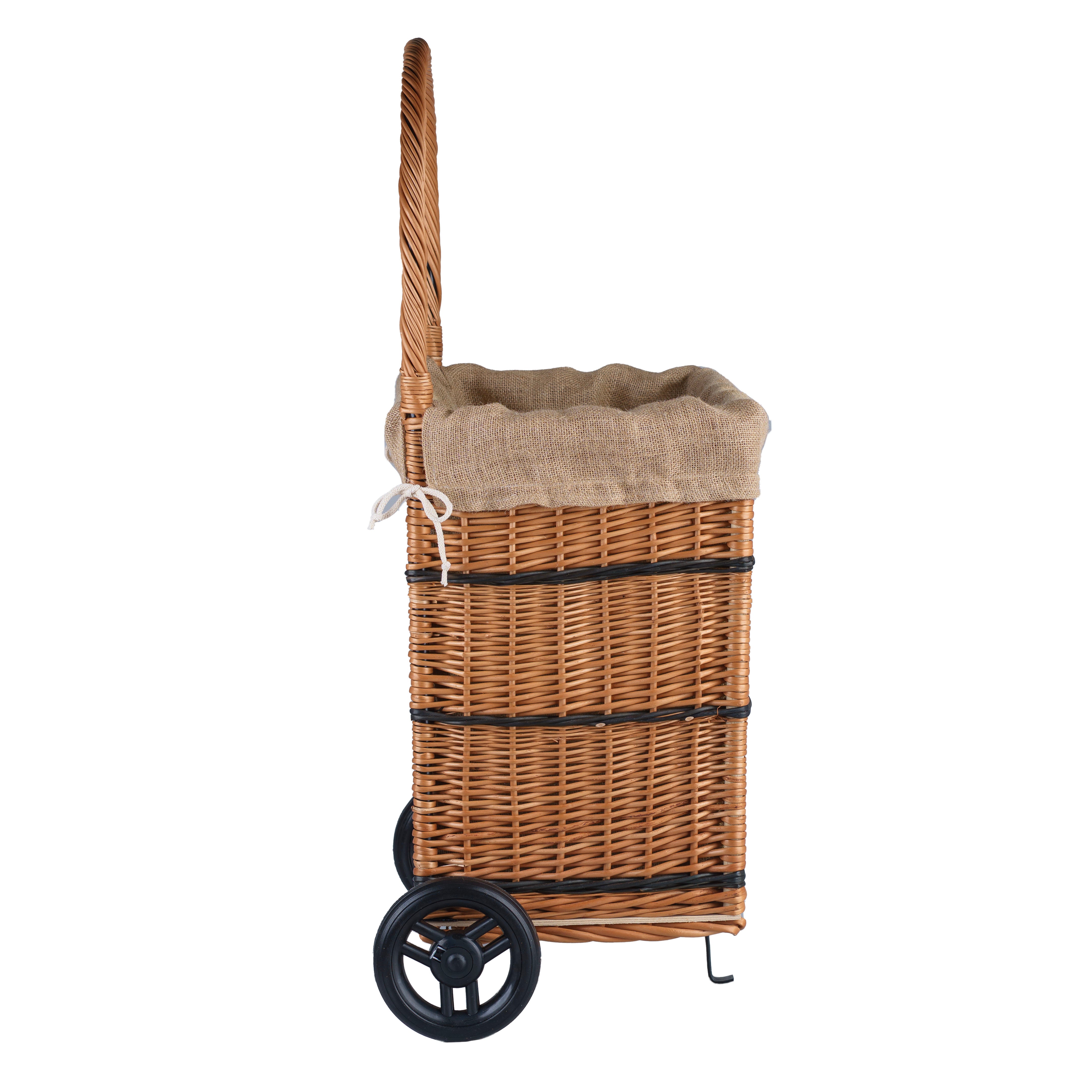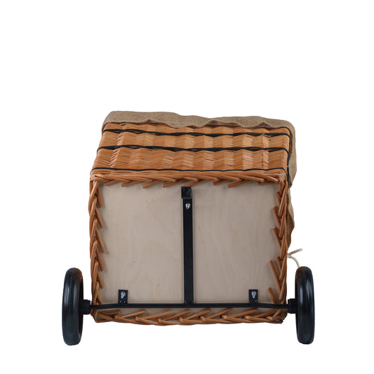 Solette wiklinowy kosz kominkowy z jutowym obszyciem, kółkami i rączką TheWickerStories