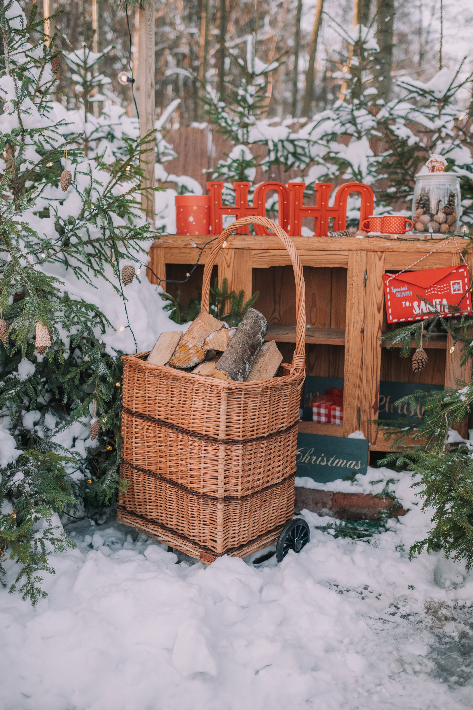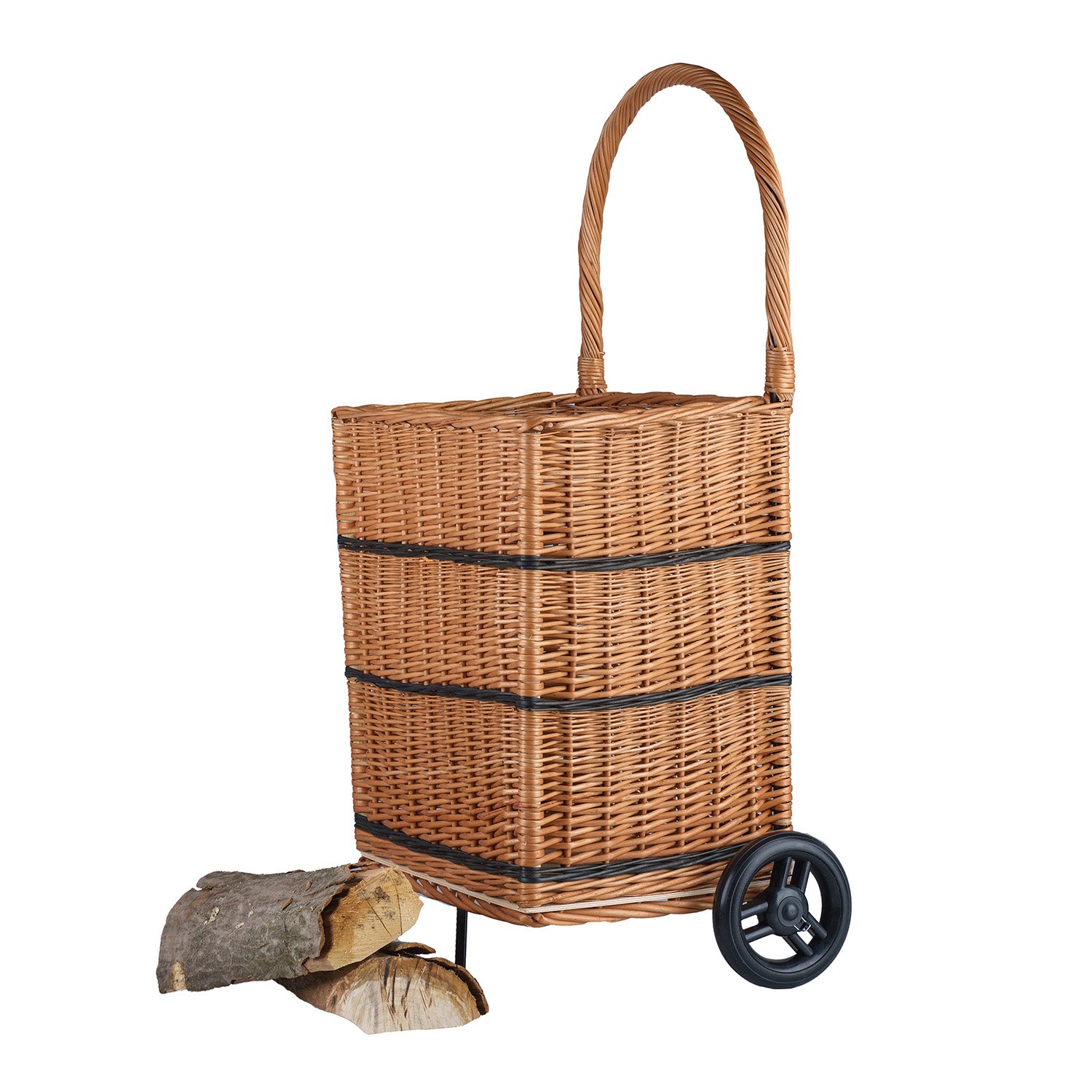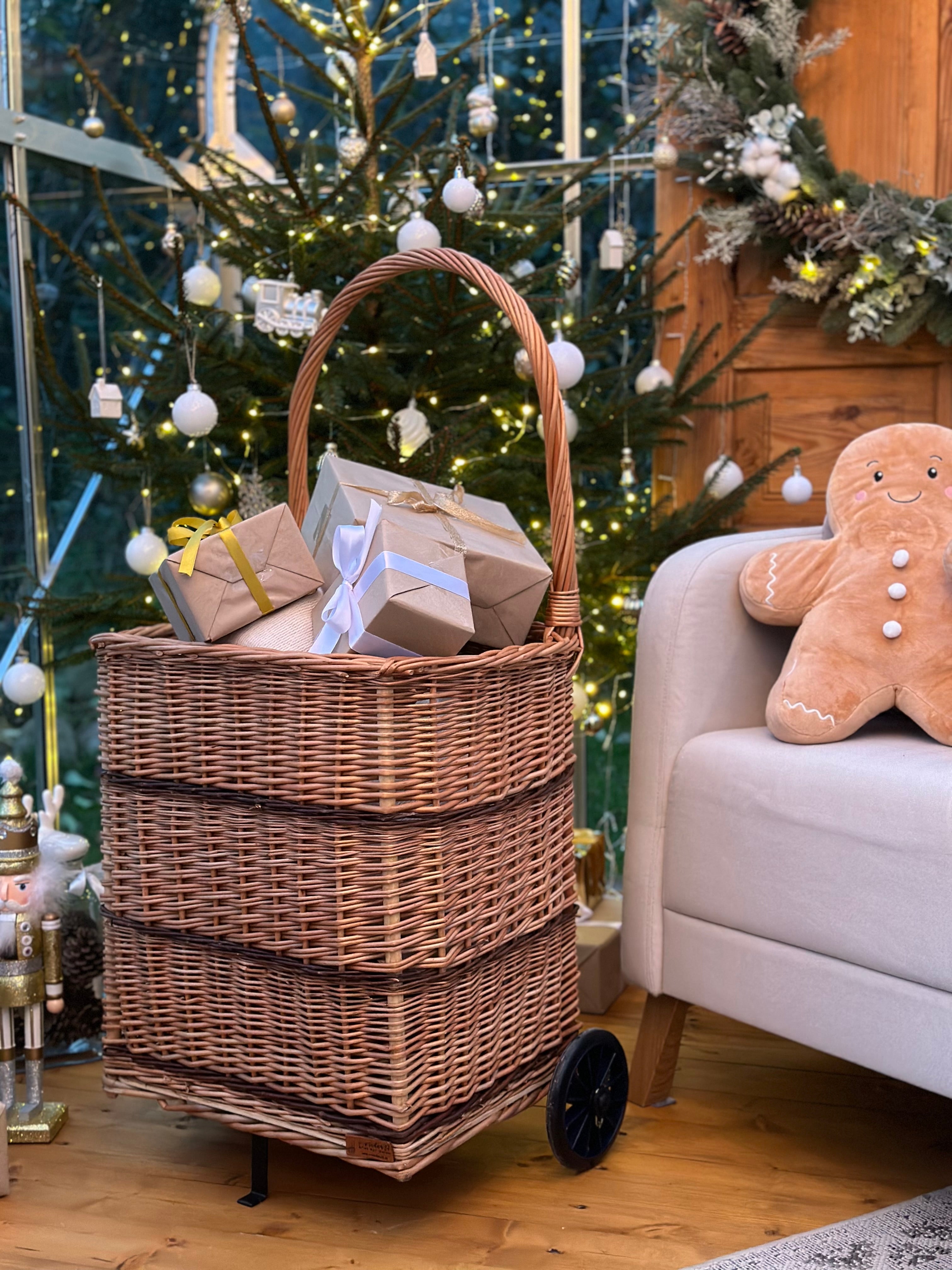 Solette wiklinowy kosz kominkowy z kółkami i rączką TheWickerStories