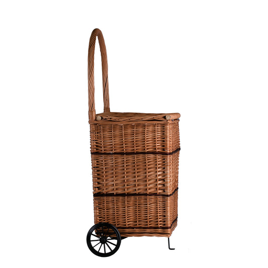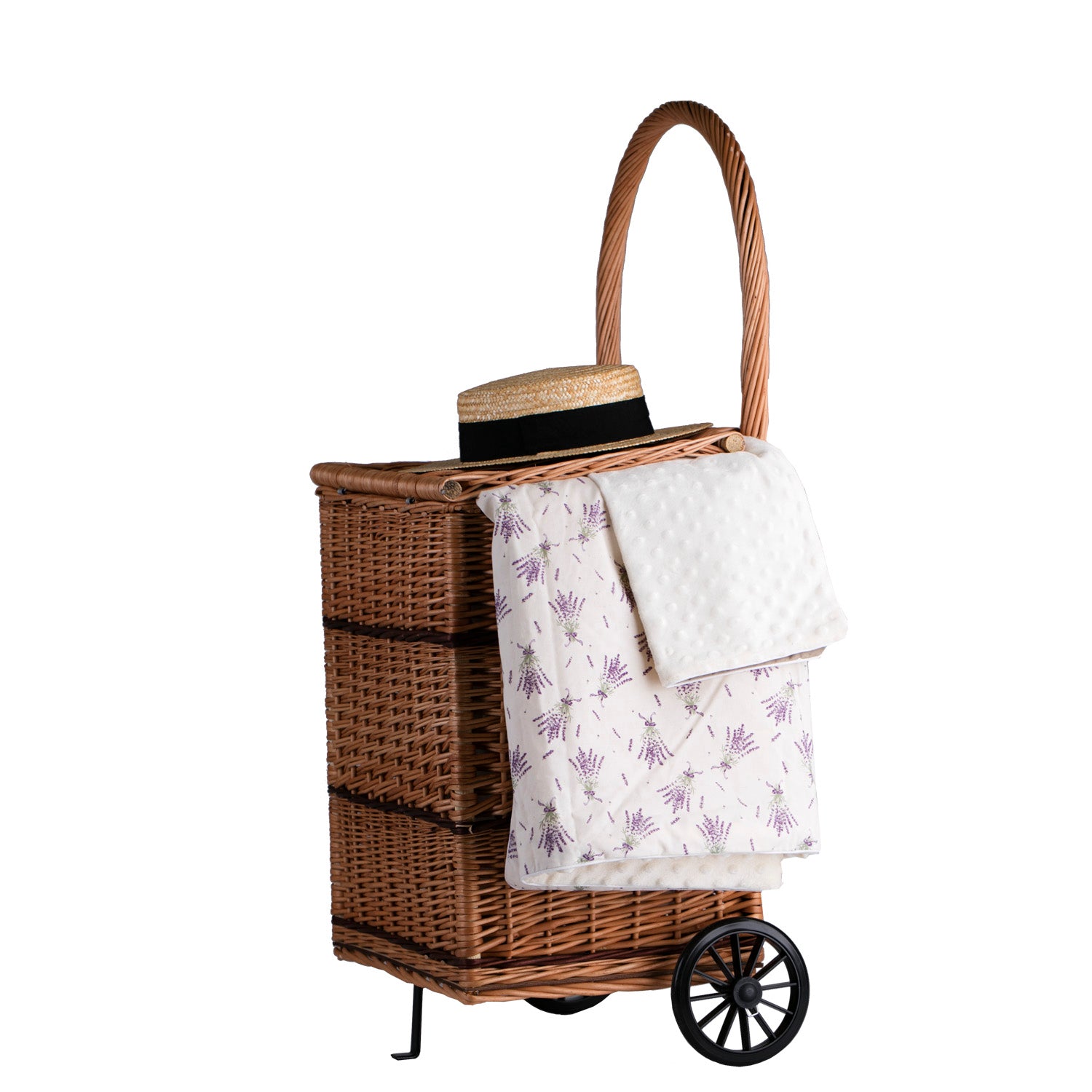 Solette wiklinowy kosz kominkowy z kółkami, rączką i wiekiem TheWickerStories