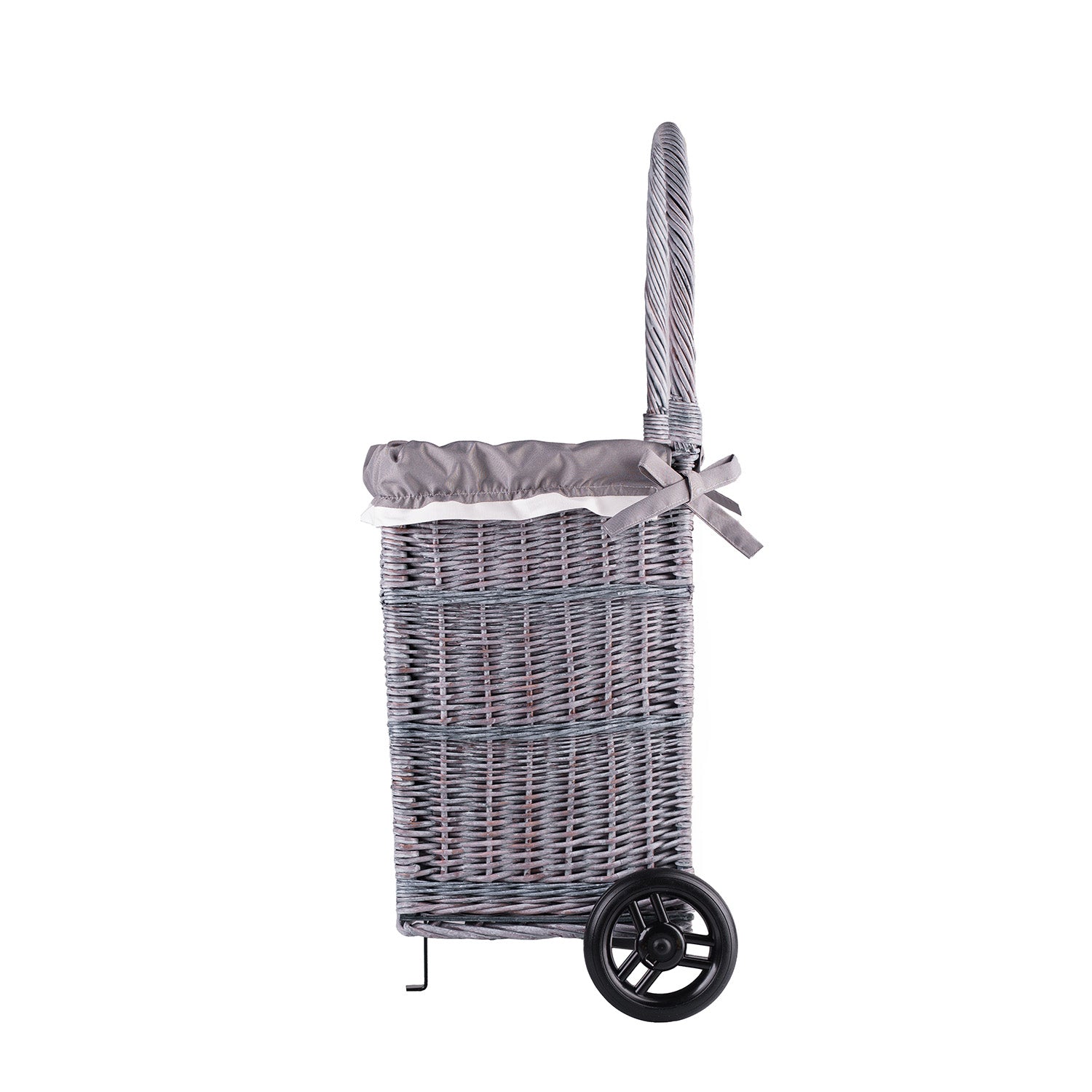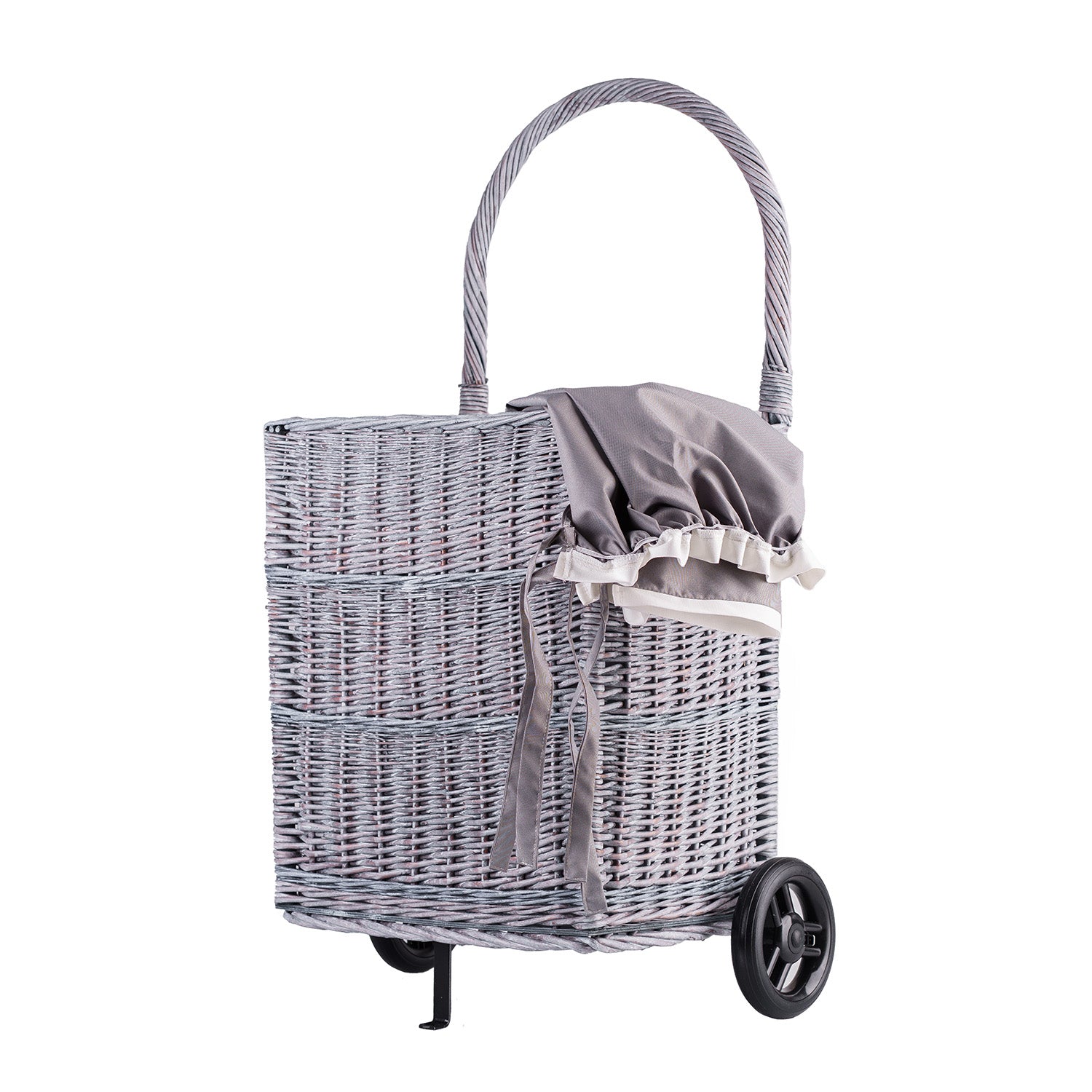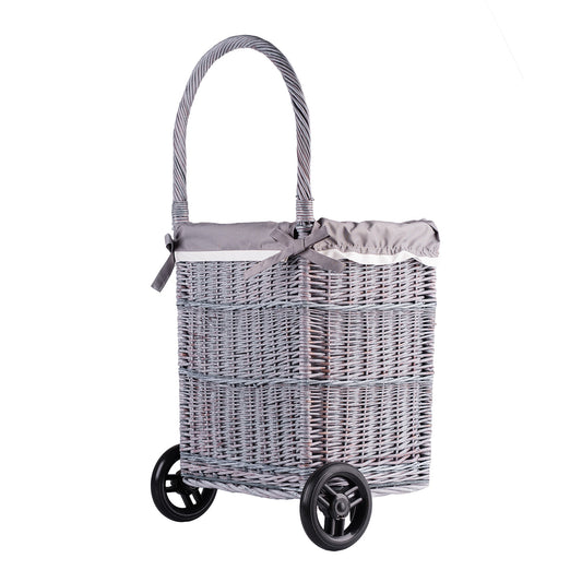 Solette wiklinowy kosz kominkowy z szarym obszyciem, kółkami i rączką TheWickerStories