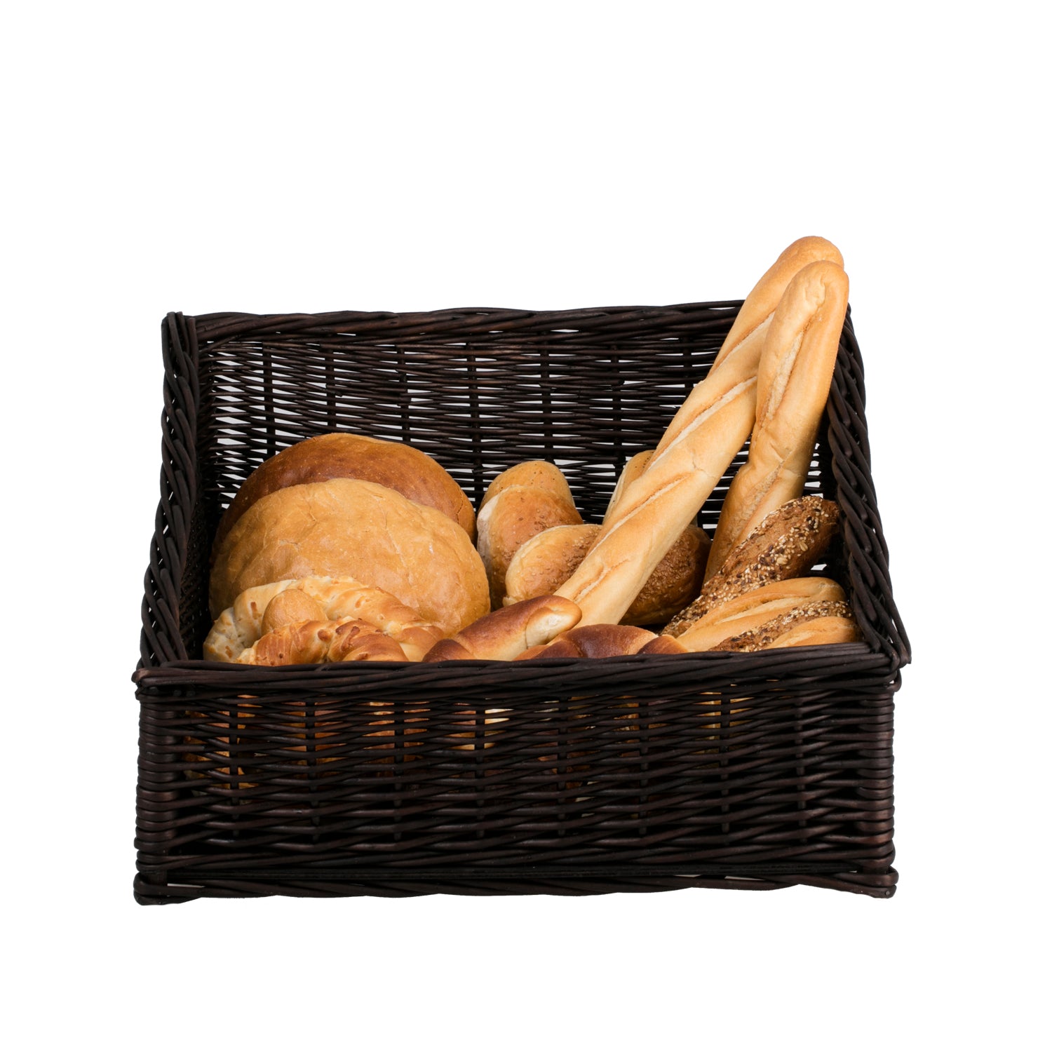 Zamów ten ręcznie pleciony kosz z europejskiej wikliny i ciesz się elegancką ekspozycją pieczywa, owoców i warzyw oraz wygodą codziennego użytkowania w sklepie lub domu, z ekologicznym charakterem, który wprowadza do wnętrza ład, ciepło i naturalny styl.